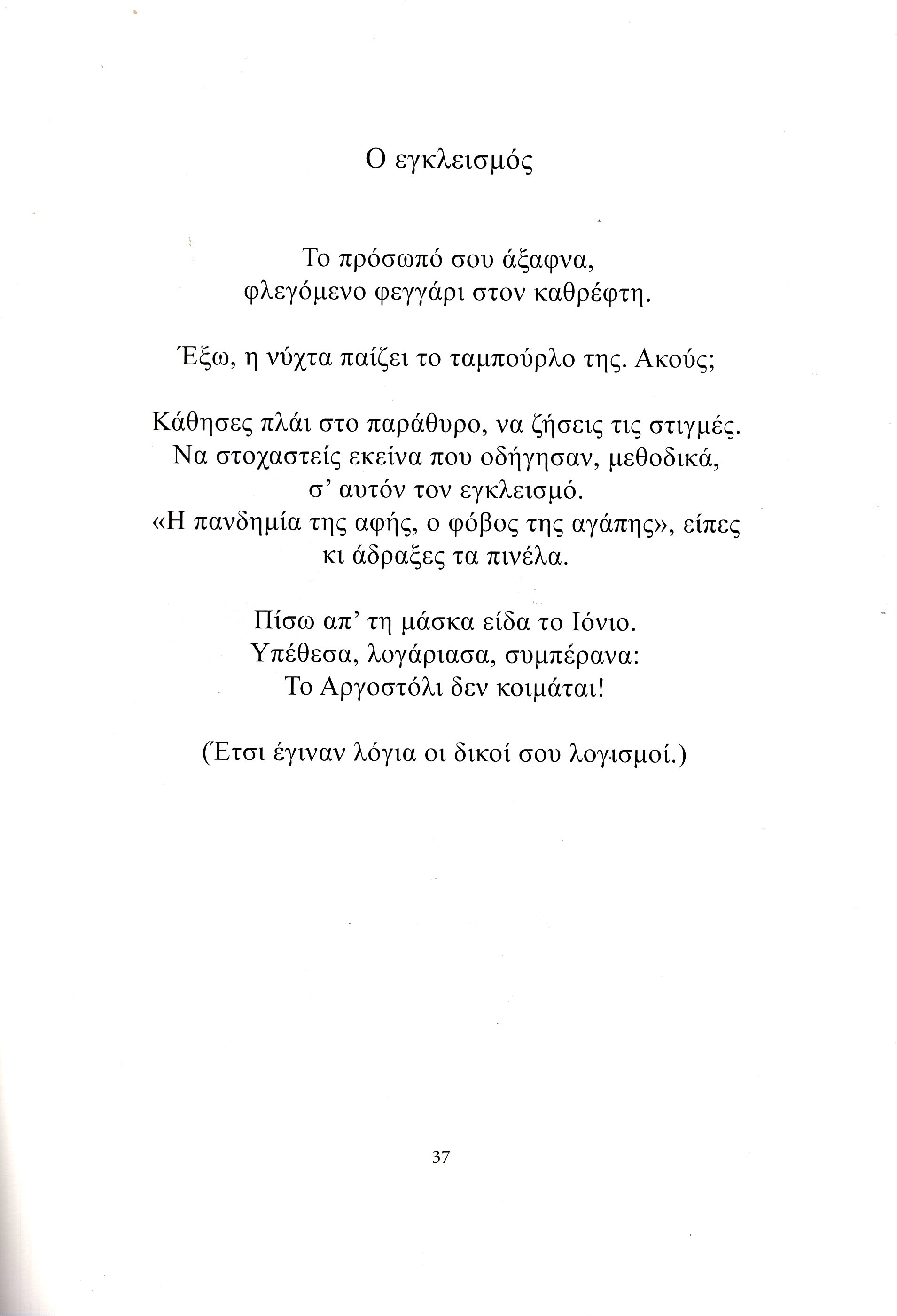 Η εμπνευσμένη συγγραφή των ποιημάτων και η δημιουργία των ζωγραφικών έργων έγινε σε όλη τη διάρκεια του εγκλεισμού εξαιτίας της πανδημίας. Το αποτέλεσμα της αγαστής τριετούς συνεργασίας και συνομιλίας ποιητή και ζωγράφου αποκρυσταλλώνει έντεχνα και περιεκτικά την στοχαστική, δυναμική και “αισιόδοξη” προσέγγιση της ζωής, με την εκφραστική ελευθερία του λόγου και της τέχνης, ακόμη και σε πολύ δύσκολες καταστάσεις.
