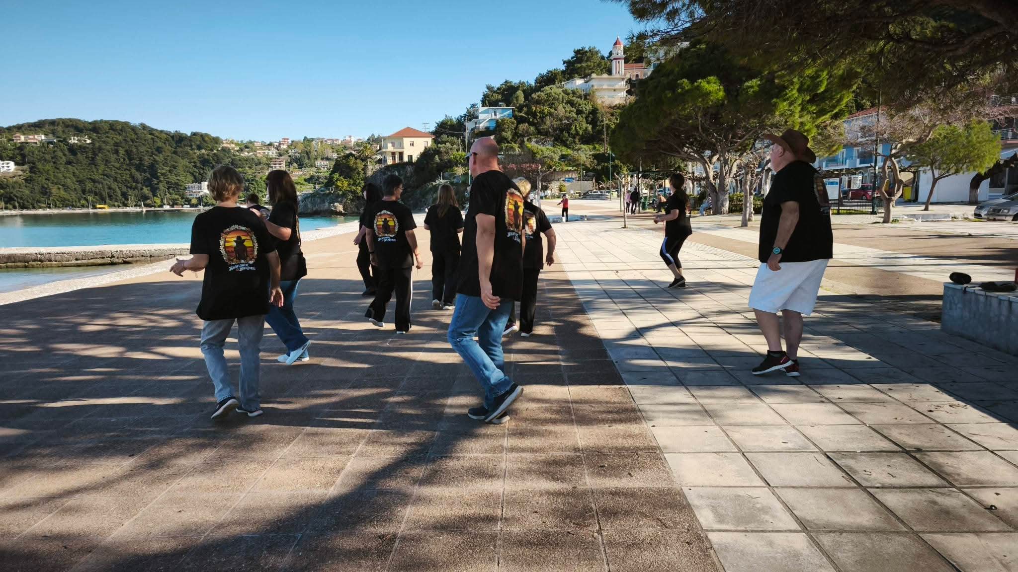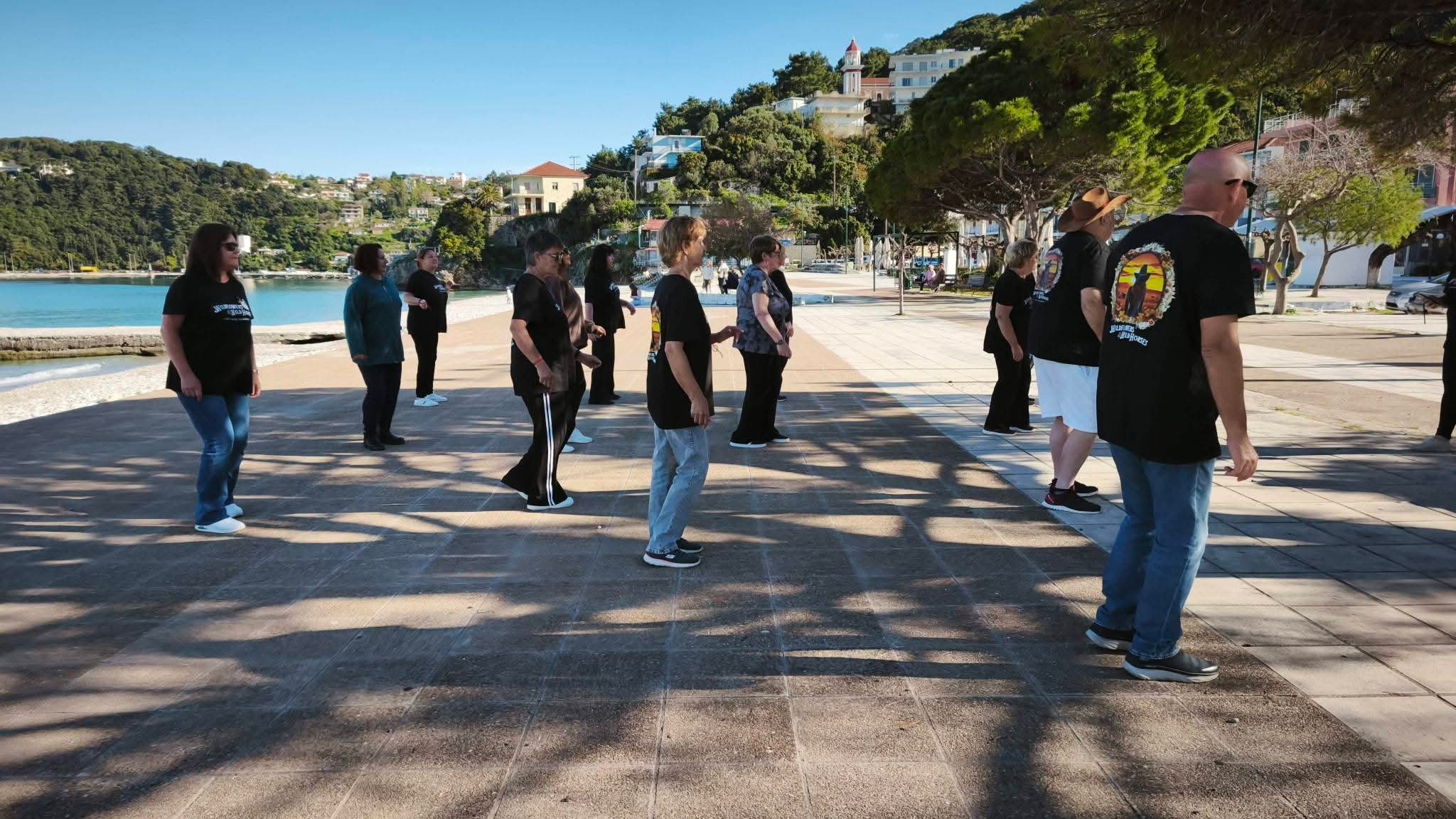 Κατά το πέρασμα τους από τον Πόρο της Κεφαλονιάς μας παρευρέθηκε ο Πρόεδρος του Πόρου Οδυσσέας Γαλιατσάτος και η Πρόεδρος του Πολιτιστικού Συλλόγου του Πόρου “Ο Πρόνησος” Ασπασία Σεριάτου η οποία μαζί με την επιχειρηματία Αθηνά Σαλαμούρα συμμετείχαν στον χορό των Βρετανών