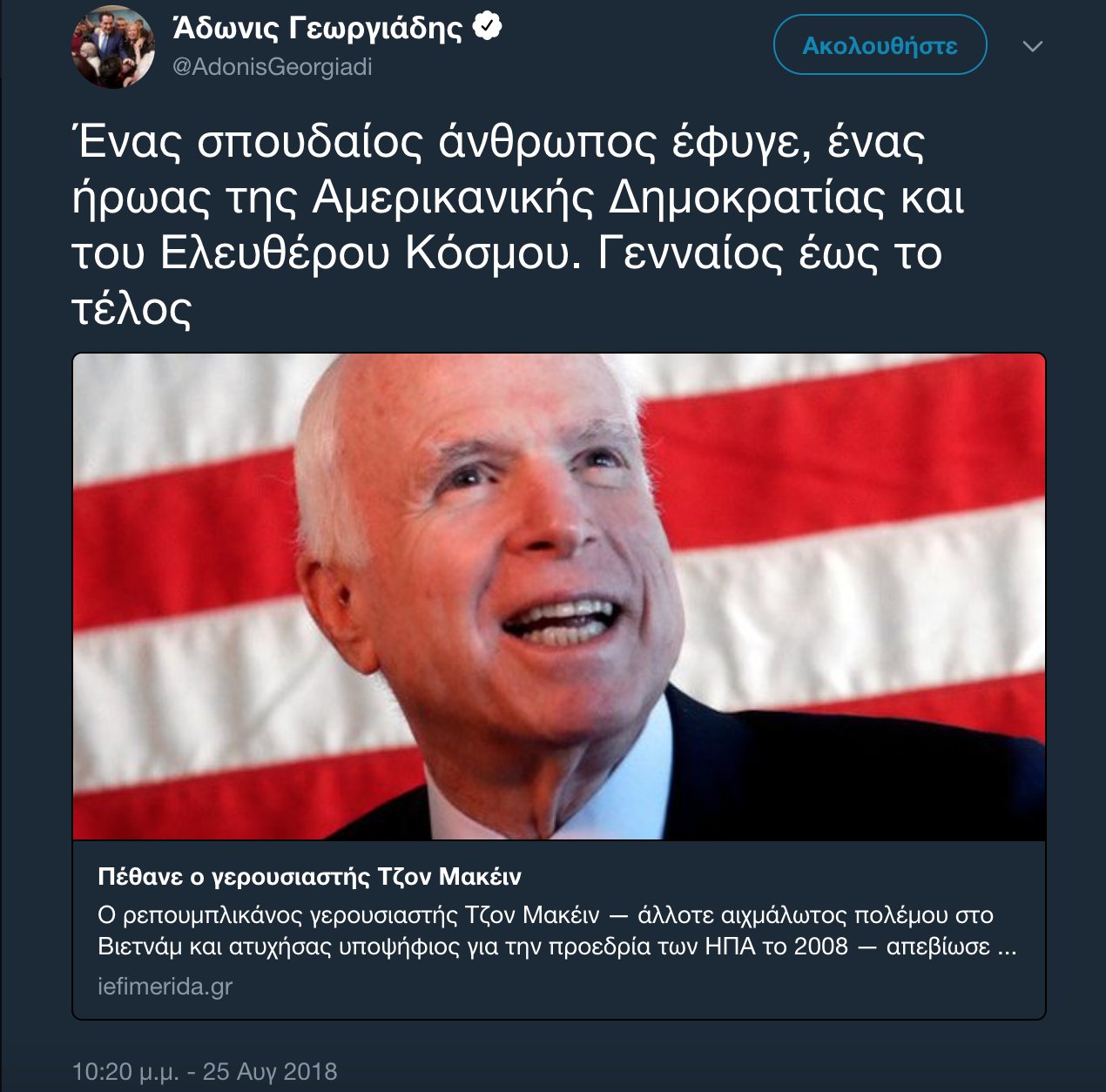 Γράφει και για τον Γιάννη Στουρνάρα: «Μπορεί να αμφισβητήσει ότι ο Γιάννης Στουρνάρας ήταν ένας υπουργός που εκπροσώπησε μια πολιτική η οποία κράτησε την Ελλάδα όρθια στην πιο μεγάλη ίσως φουρτούνα της;»