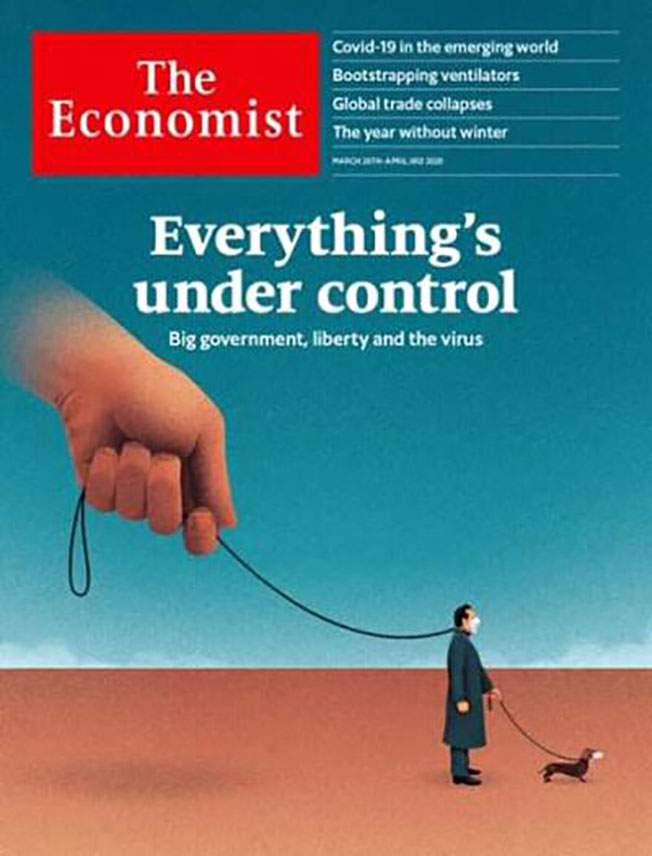 Η Εικόνα είναι το Εξώφυλλο του Economist με αφορμή τον coronavirus και το πώς η ελίτ βλέπει τα μέτρα, που σχεδίασε, για τη “σωτηρία” της ανθρωπότητας.