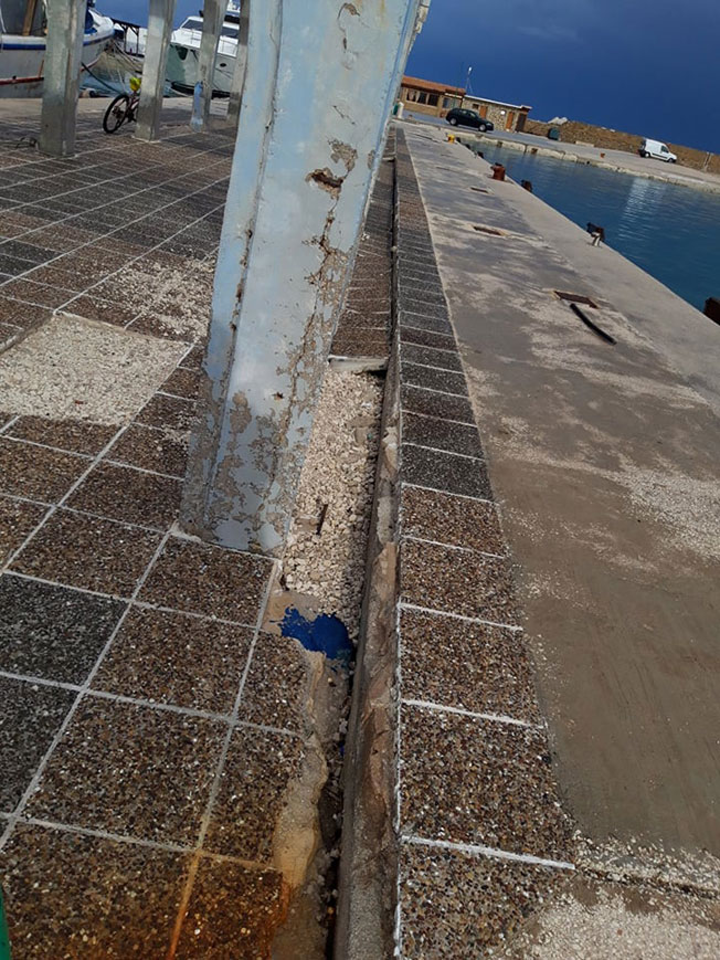 Επίσης, σε άλλο σημείο του λιμανιού της Ζακύνθου υφίσταται υψηλή -άχρηστη- κατασκευή (φωτο 5) η οποία γέρνει καταφανώς και είναι ιδιαίτερα επικίνδυνη, καθώς και διαχωρισμός του εδάφους (φωτο 6-7).