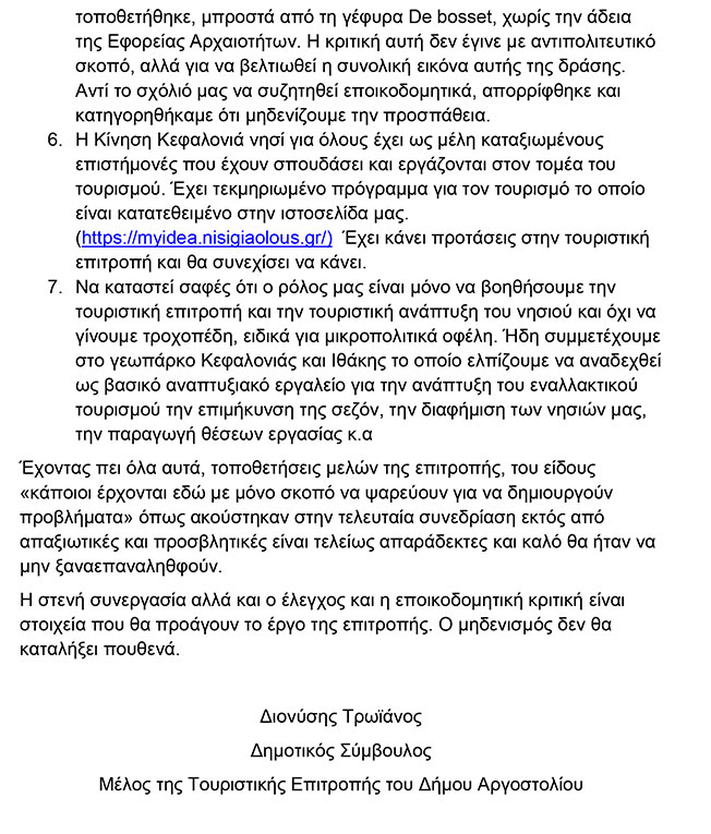Προς τα μέλη της Τουριστικής Επιτροπής του Δήμου Αργοστολίου