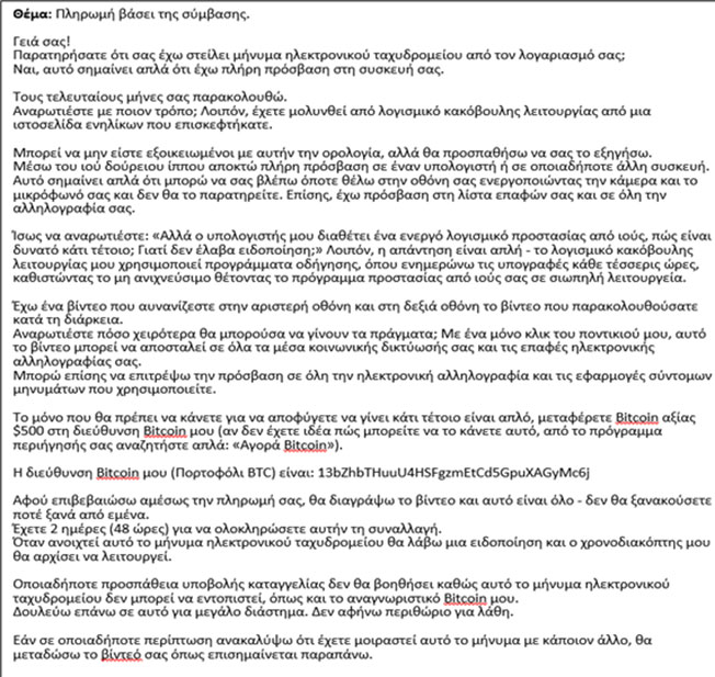 Μέσω μηνυμάτων ηλεκτρονικού ταχυδρομείου με εκβιαστικό περιεχόμενο