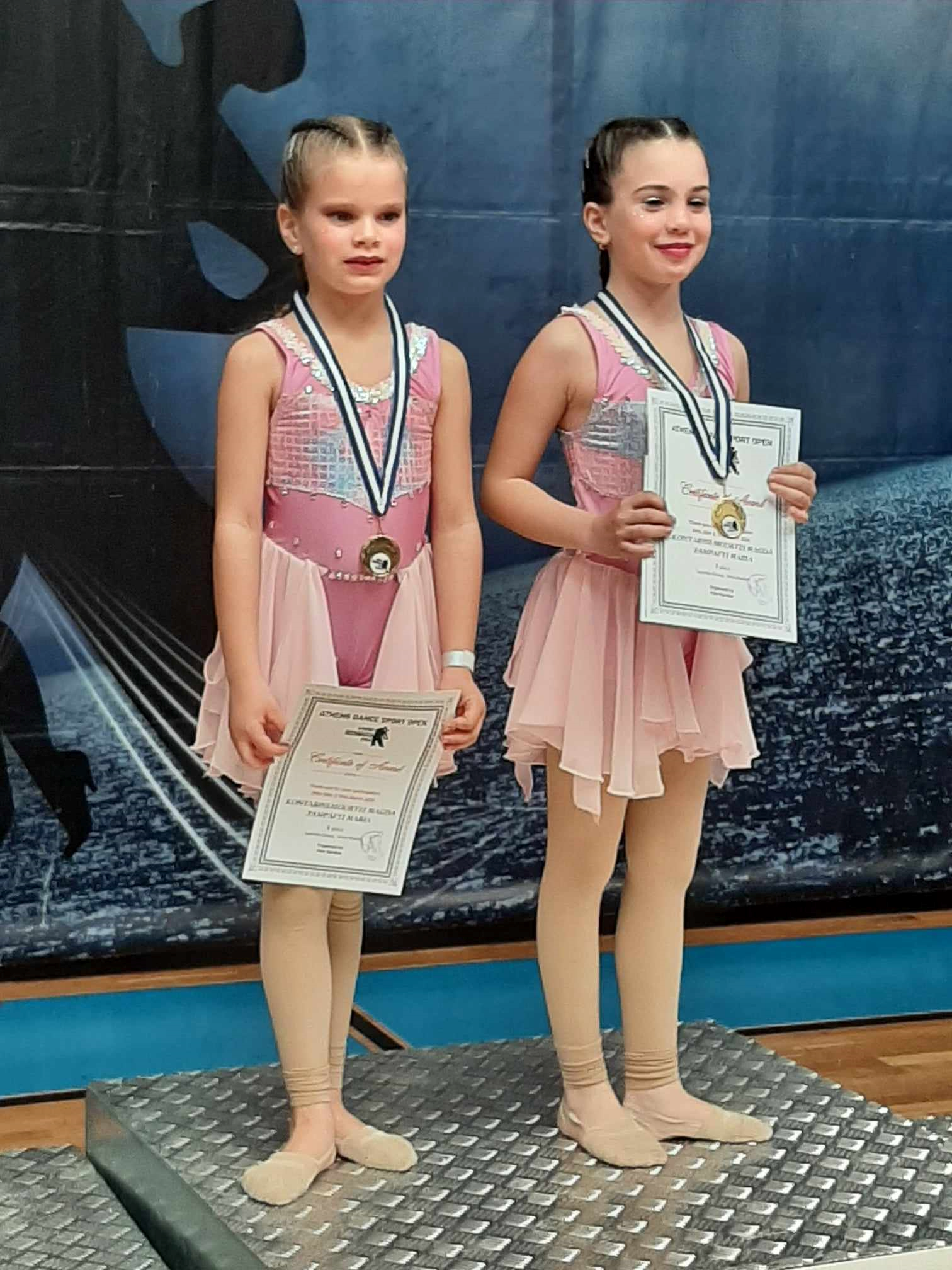 1η θέση σύγχρονο χορό (Μαντά Μαρίζα, Μπαζίγου Υρώ).