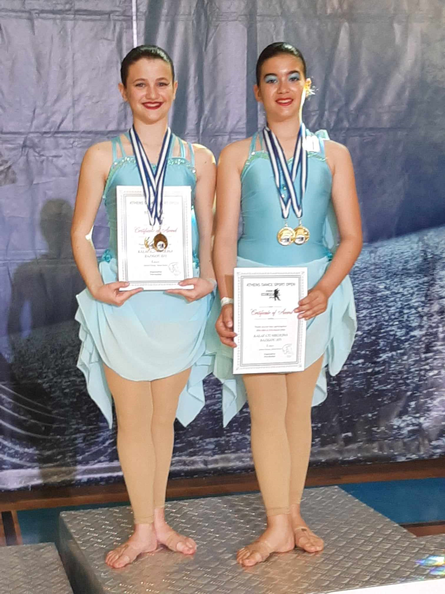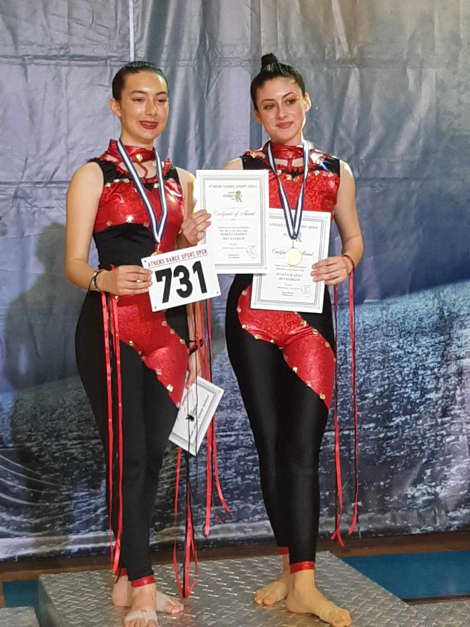 1η θέση ακροβατικό χορό εφήβων. (Καλαφάτη Νικολίνα, Μπαζίγου Έφη).