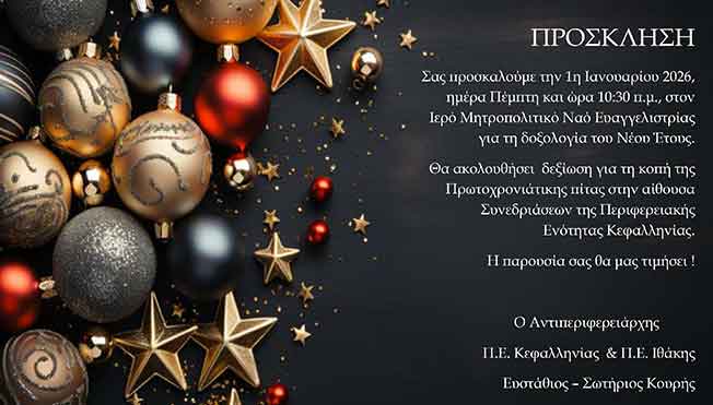 Πρόσκληση Πρωτοχρονιάς του Αντιπεριφερειάρχη κ. Σωτήρη Κουρή