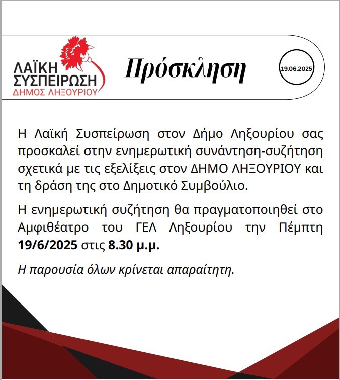 Πρόσκληση της Λαϊκής Συσπείρωσης Ληξουρίου σε ενημερωτική συνάντηση
