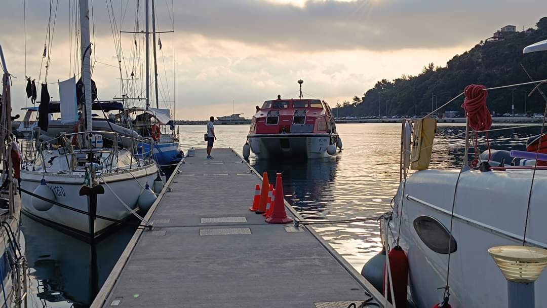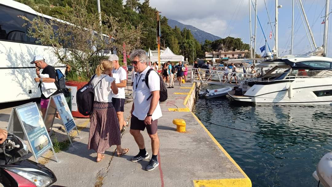 Τους υπεύθυνους του πλοίου και τους επιβάτες, εκτός από εμένα, υποδέχτηκαν ο Πρόεδρος του Πόρου Κεφαλονιάς Οδυσσέας Γαλιατσάτος και ο Πρόεδρος του Εμπορικού και Επαγγελματικού Συλλόγου του Πόρου Λευτέρης Στελλάτος!