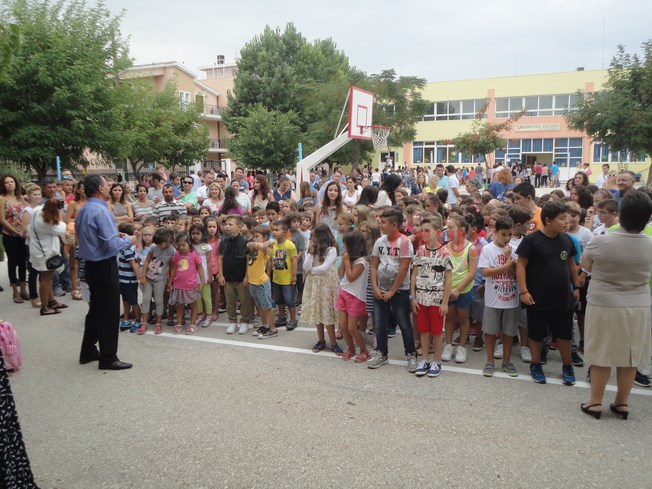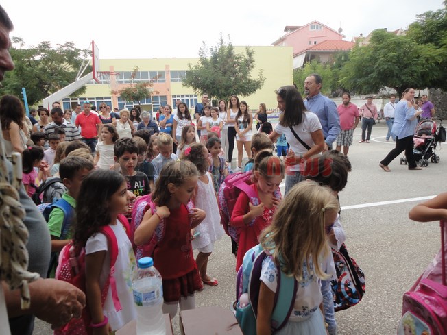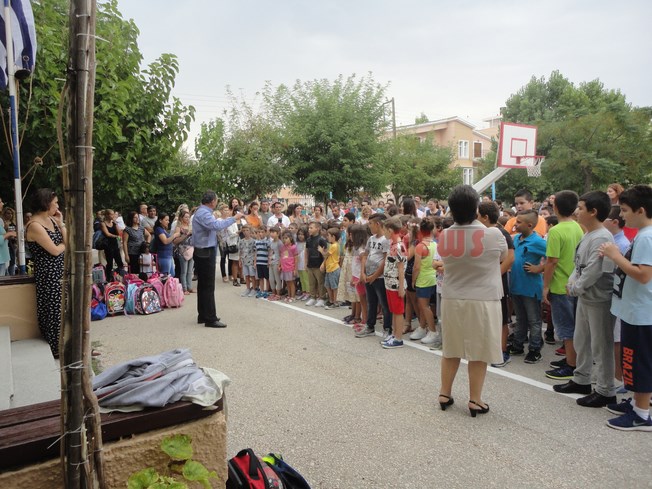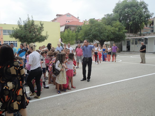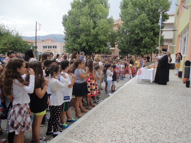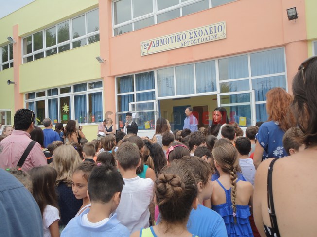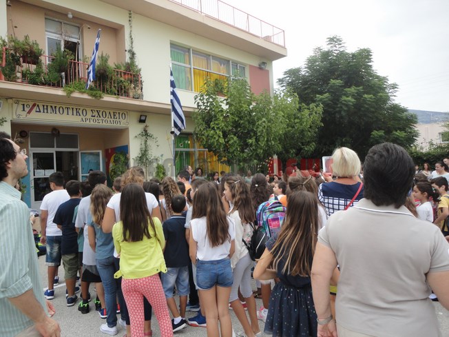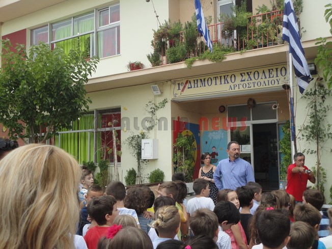 Αγιασμός μαζί τα δύο Δημοτικά Σχολεία όπως κάνουν κάθε χρόνο. Φέτος οι επίσημοι είχαν να πάνε στο νέο σχολικό συγκρότημα, κι έτσι για πρώτη φορά ο Δήμαρχος δεν ήρθε στον αγιασμό του 1ου και 2ου Δημοτικού Σχολείου Αργοστολίου. Ωστόσο ο Χρ. Παπουτσής ήταν εκεί.