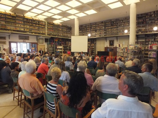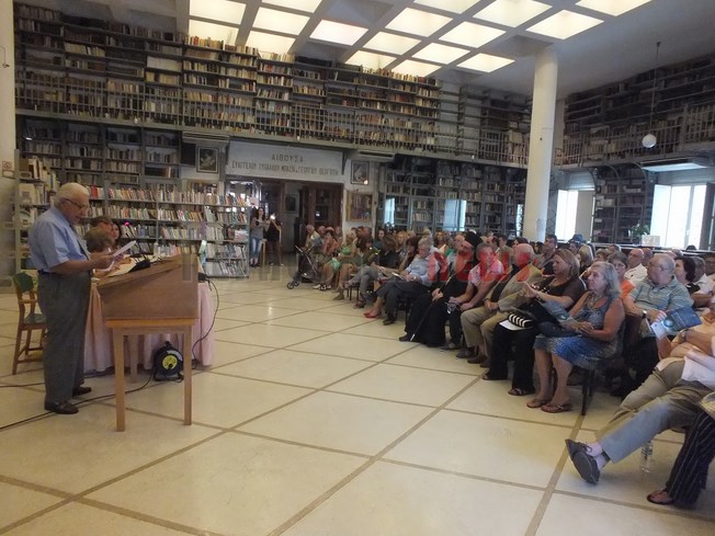 Φορτισμένη συγκινησιακά η ατμόσφαιρα μέσα στην αίθουσα της Κοργιαλένειου Βιβλιοθήκης, μιας και η 17η Εβδομάδα Αποδήμου είναι αφιερωμένη στον Γεράσιμο Αρσένη. Όλοι στις ομιλίες τους αναφέρθηκαν στην προσωπικότητα του, ιδιαίτερα όταν μίλησε η Αλέκα Κατσέλη αλλά και η Ευριδίκη Λειβαδά που αναφέρθηκε στην ομιλία της αναλυτικότερα για τη ζωή του Γεράσιμου Αρσένη.