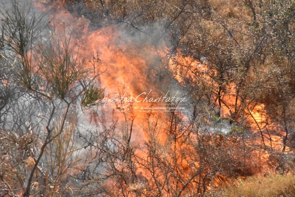 Αυτήν την στιγμή, παρά τις δυνατές ριπές αέρα, η πυρκαγιά η οποία όπως όλα δείχνουν ξεκίνησε από ένα …οικόπεδο των Κουρουπάτων (;;;) , εξαπλώθηκε έως τον Άγιο Θανάση, (κάμπος κοντά στο χωριό των Χαβδάτων).