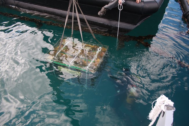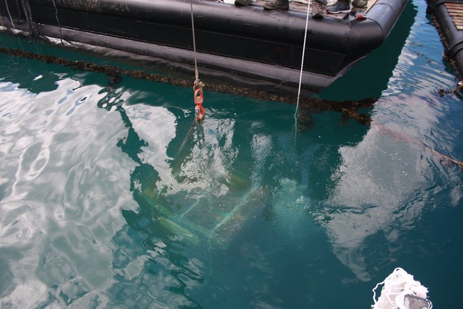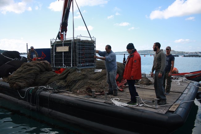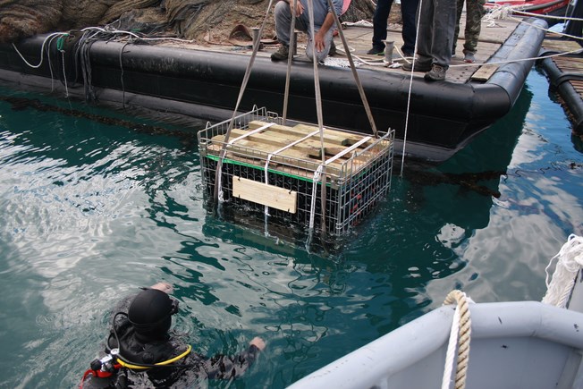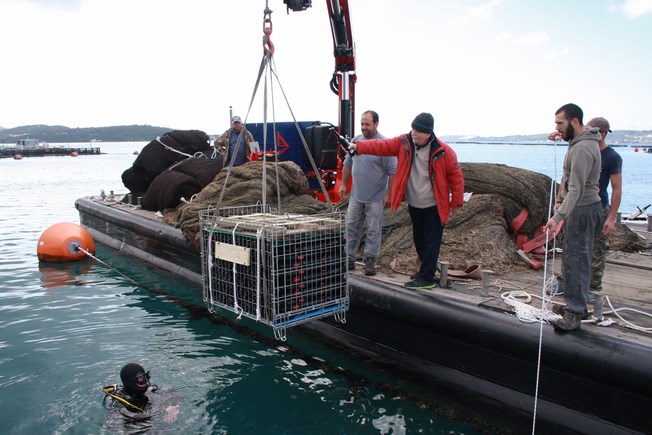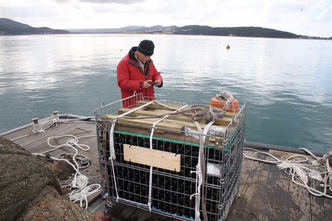 Με την πολύ μεγάλη συνέργεια των Ιχθυοτροφείων της Κεφαλονιάς που διέθεσαν μέσα και ανθρώπινο δυναμικό, αλλά και του πολύ καλού φίλου Δημήτρη Μεσσάρη, έγινε δυνατή η πόντιση των κρασιών σε βάθος 22 μέτρων.