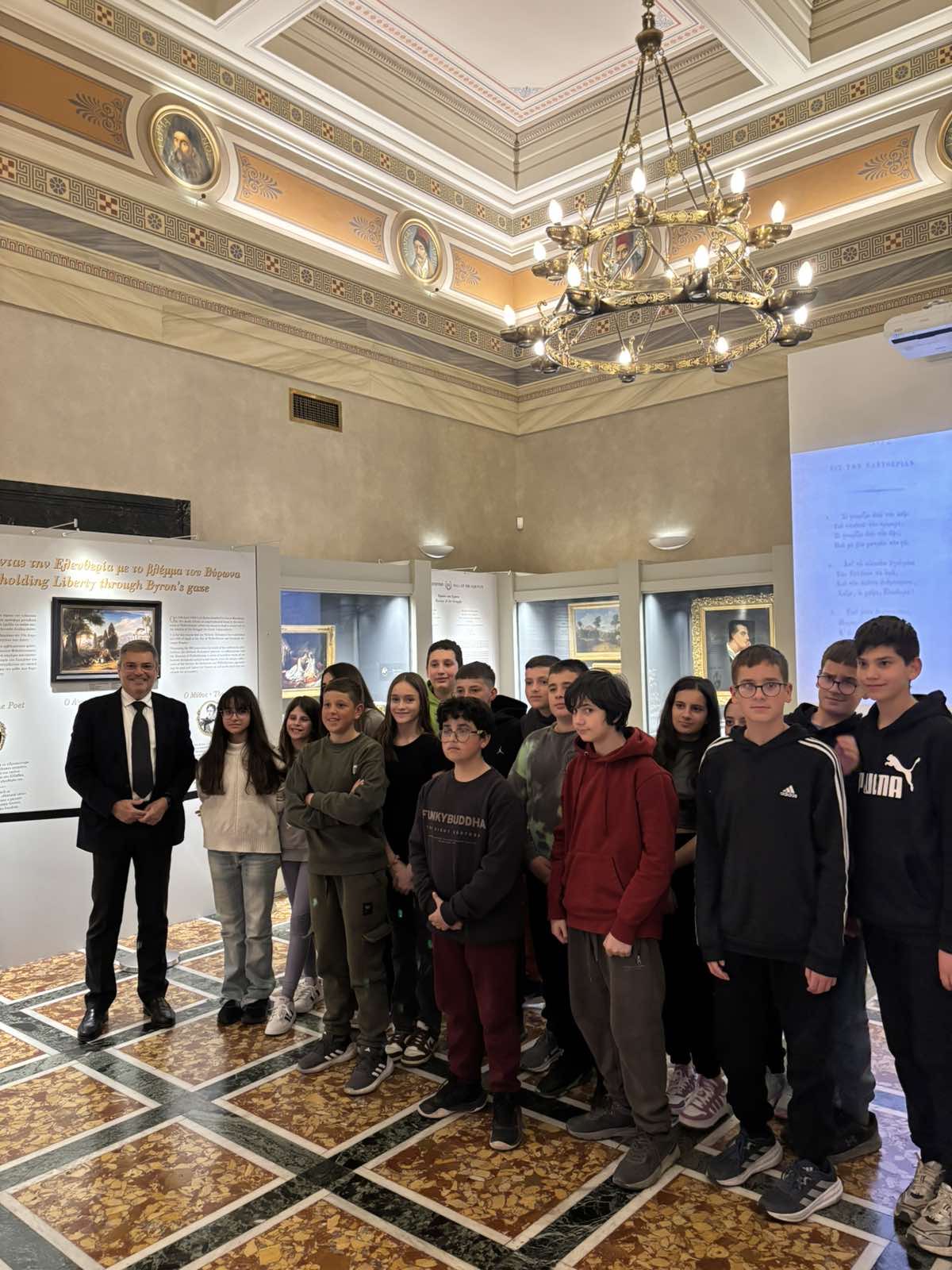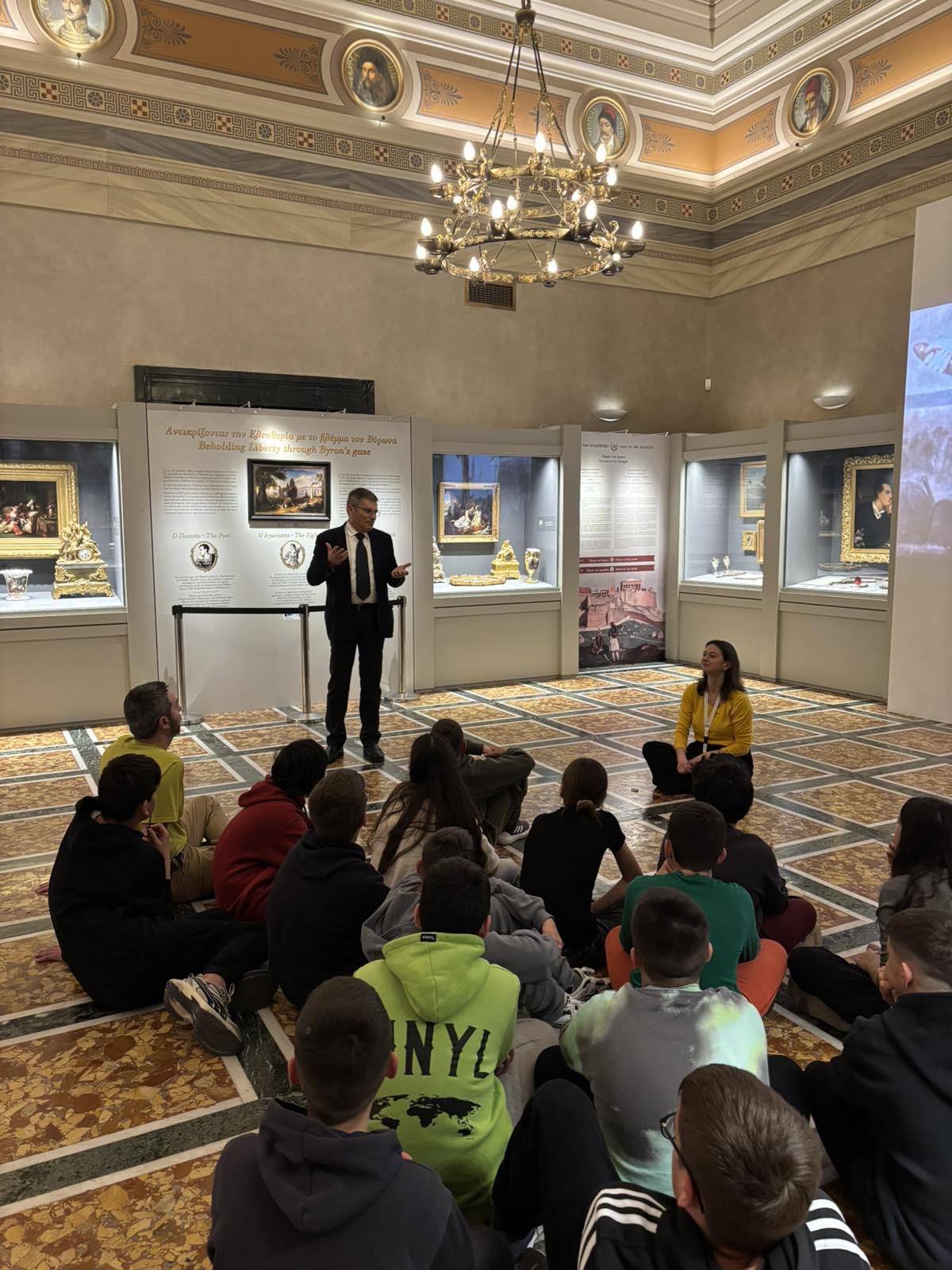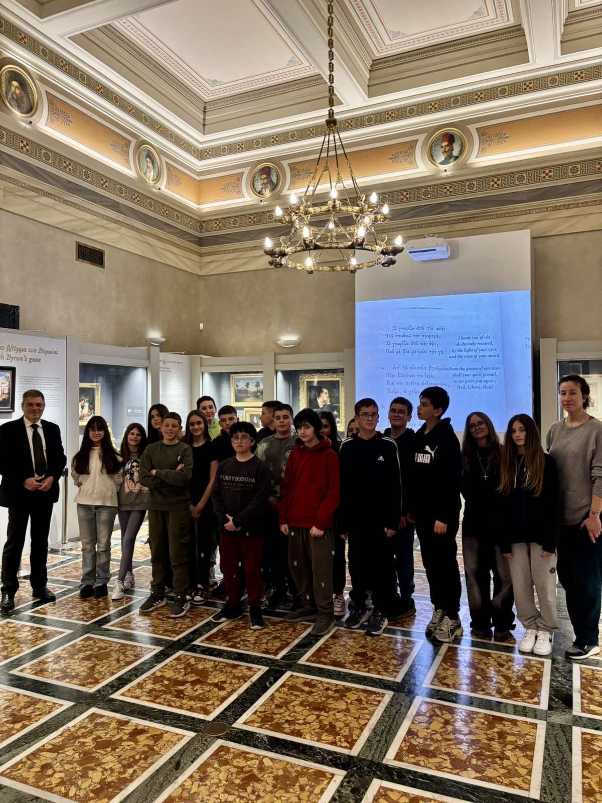 Οι μαθητές περιηγήθηκαν στους ιστορικούς χώρους του κτιρίου και επισκέφθηκαν την έκθεση στην αίθουσα «Ελευθέριος Βενιζέλος», όπου εκτίθενται μοναδικά εικαστικά και κειμενικά τεκμήρια.