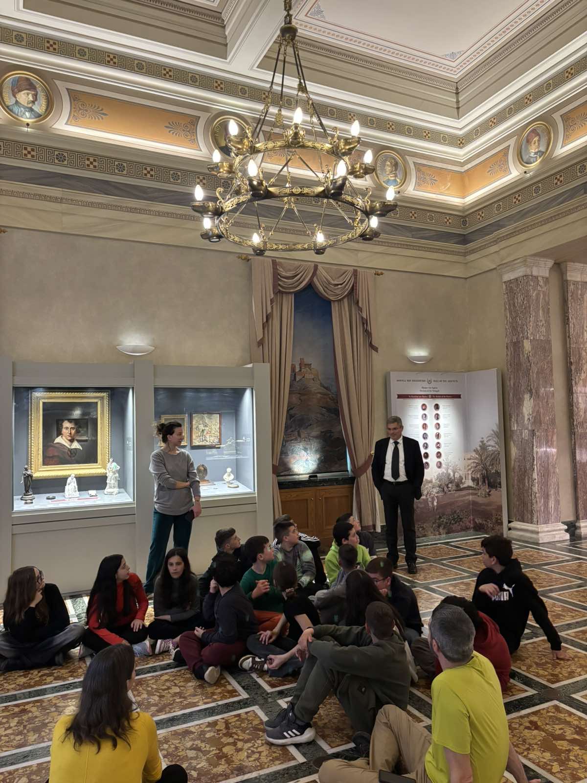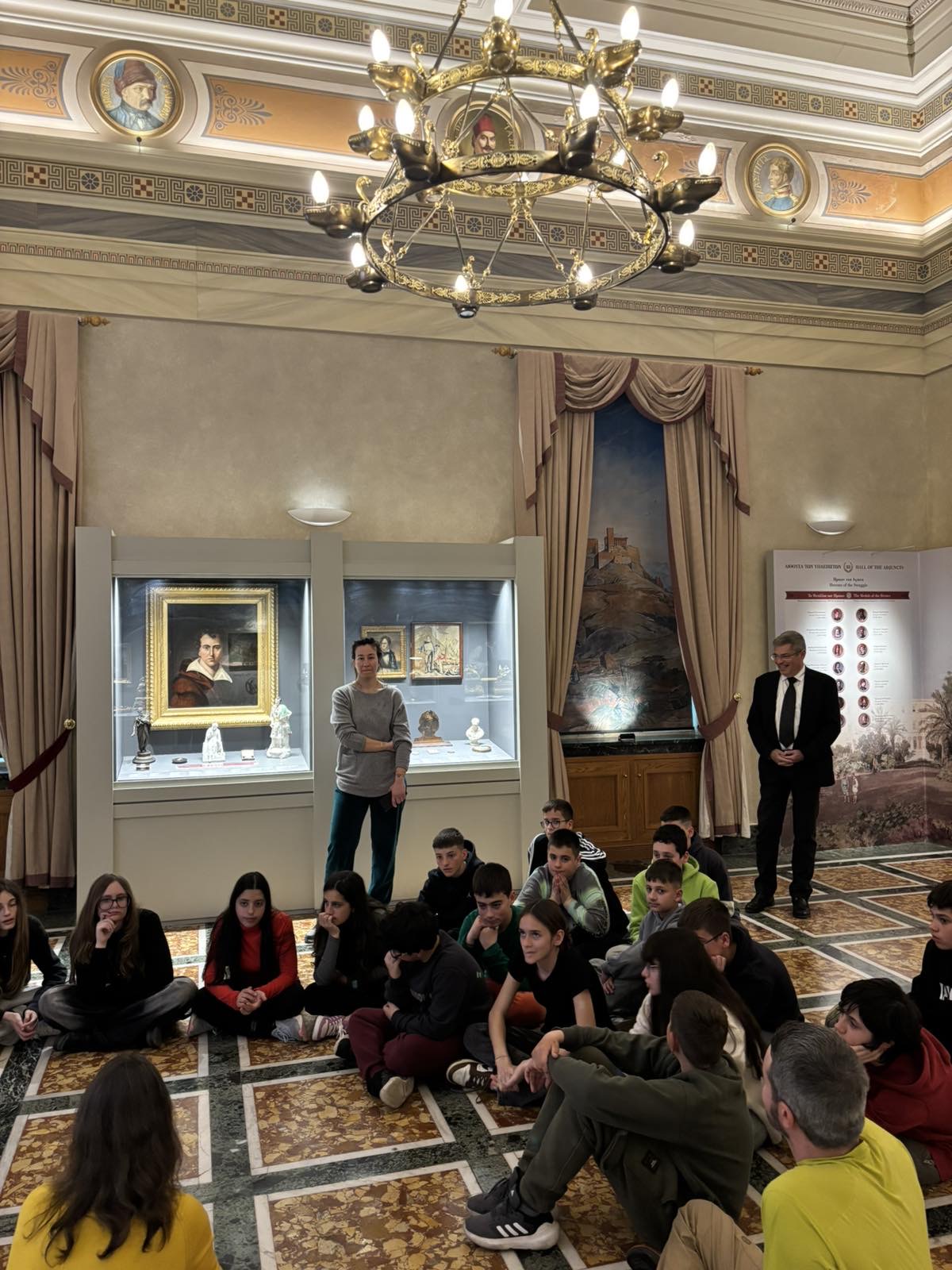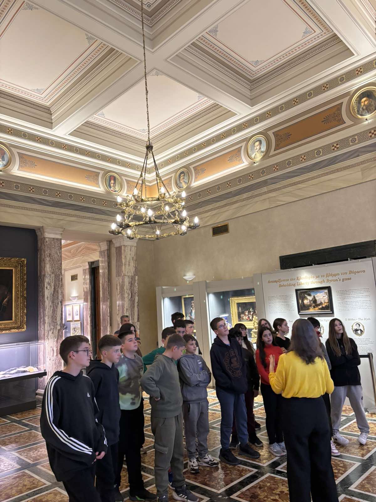 Οι μαθητές περιηγήθηκαν στους ιστορικούς χώρους του κτιρίου και επισκέφθηκαν την έκθεση στην αίθουσα «Ελευθέριος Βενιζέλος», όπου εκτίθενται μοναδικά εικαστικά και κειμενικά τεκμήρια.