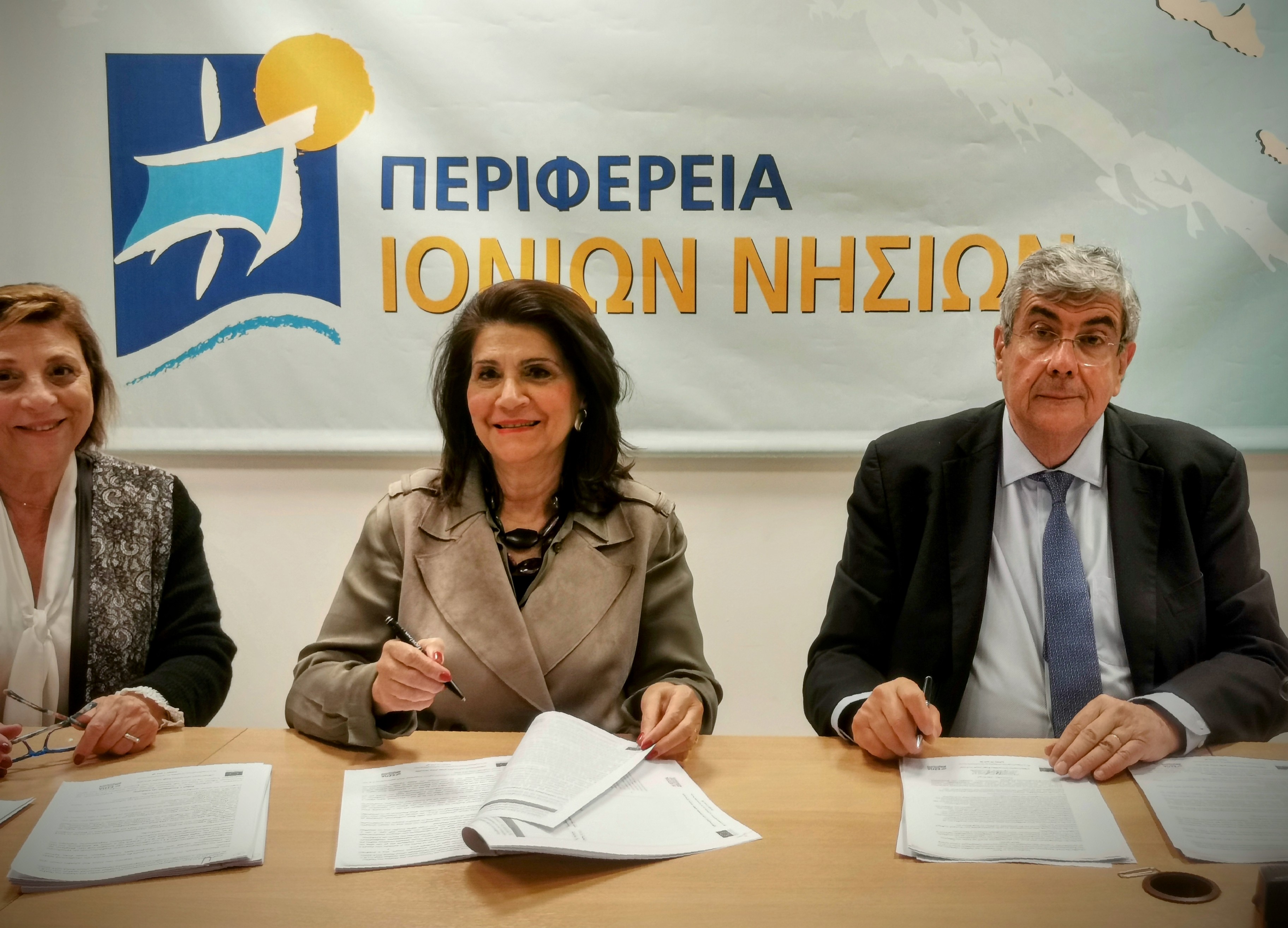 Υπεγράφη από την Περιφερειάρχη Ιονίων Νήσων, Ρόδη Κράτσα-Τσαγκαροπούλου, στην έδρα της ΠΙΝ στις Αλυκές Ποταμού στην Κέρκυρα, την Πέμπτη 30 Μαρτίου 2023, η σύμβαση έργου με την ανάδοχο εταιρεία «Άποψη» και τον εκπρόσωπό της, Χαράλαμπο Ζαφειρόπουλο, για την Πράξη «Δράσεις για την Επαγγελματική και Κοινωνική ένταξη ευπαθών κοινωνικά ομάδων στην Π.Ι.Ν.» με Κωδικό ΟΠΣ 5067162 στο Επιχειρησιακό Πρόγραμμα «Ιόνια Νησιά 2014-2020».
