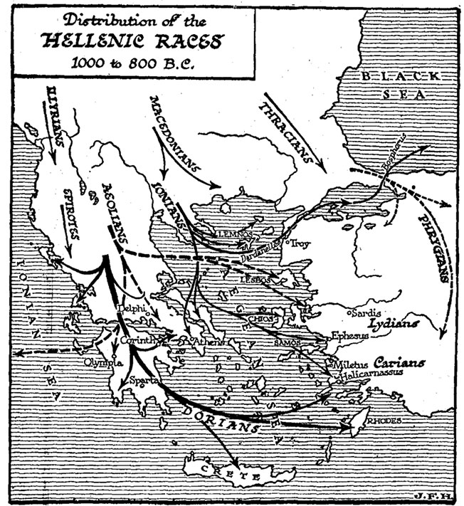 (Διάγραμμα των μετακινήσεων στον ελλαδικό χώρο, πηγή: el.wikipedia.org/File:Wells_Hellenic_races.png)