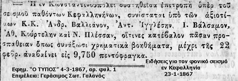 Σολωμός Γ., «Η εν Κεφαλληνία Σύμβασα καταστροφή»,» Tύποις «Η ΠΡΟΟΔΟΣ 1867