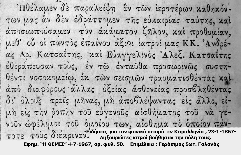 Βεργωτής Παναγής, «Ο σεισμός της 23 Ιανουαρίου 1867»