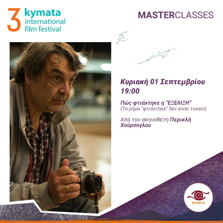 Στις 19:00 θα πραγματοποιηθεί στο Θαλασσόμυλο το τελευταίο masterclass με τίτλο “Πώς φτιάχτηκε η “ΕΞΕΛΙΞΗ” από τον σκηνοθέτη Περικλή Χούρσογλου. Η είσοδος είναι ελεύθερη χωρίς κράτηση. Το masterclass θα πραγματοποιηθεί σε κλειστό χώρο.