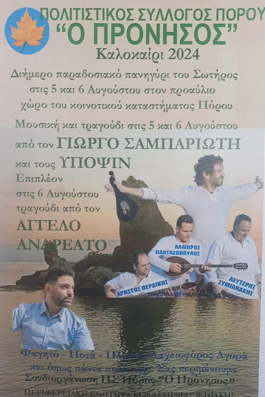 Οι εκδηλώσεις αποτελούν συνδιοργάνωση του Πολιτιστικού Συλλόγου του Πόρου “Ο Πρόνησος” και της Περιφερειακής Ενότητας Κεφαλονιάς και Ιθάκης!