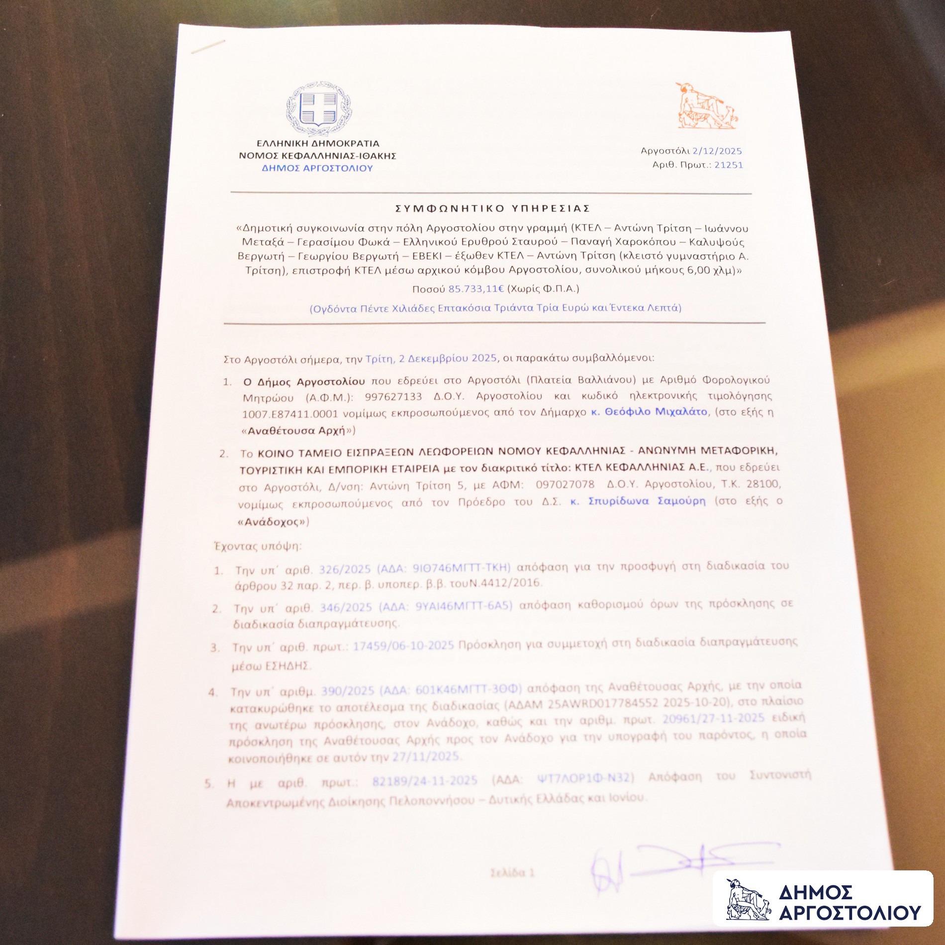Με στόχο τη συνολική αναβάθμιση των υπηρεσιών μετακίνησης και τη βελτίωση της ποιότητας ζωής κατοίκων και επισκεπτών, ο Δήμος Αργοστολίου, σε συνεργασία με το ΚΤΕΛ Κεφαλονιάς, επαναφέρει επίσημα σε λειτουργία τη Δημοτική Συγκοινωνία.