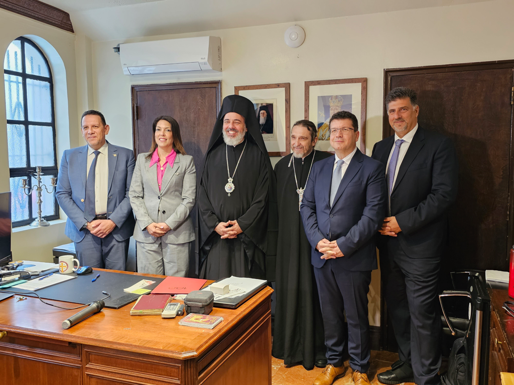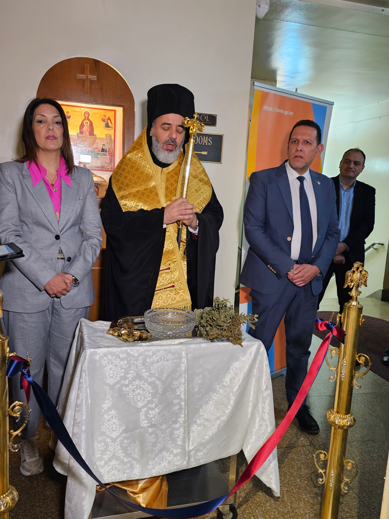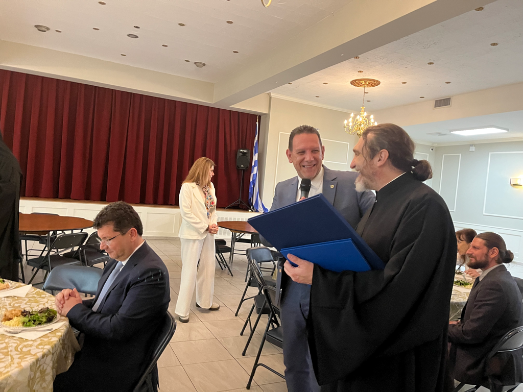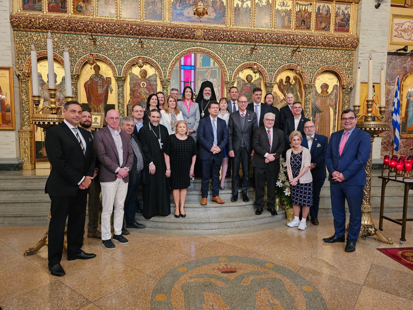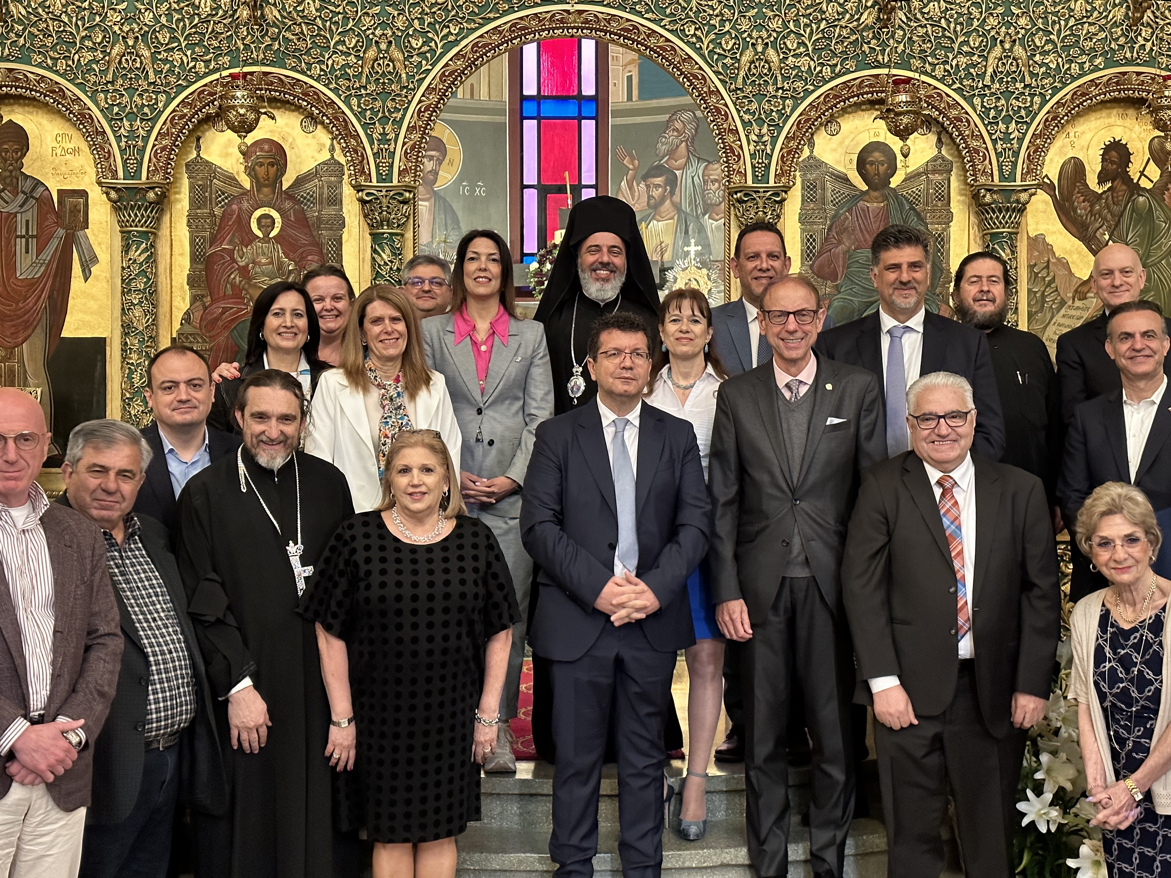 Στην τελετή εγκαινίων εκπροσώπησε τον Αρχιεπίσκοπο Αμερικής Ελπιδοφόρο ο Επίσκοπος, Αρχιγραμματέας της Ιεράς Συνόδου και Διευθυντής του τμήματος Θρησκευτικής Εκπαίδευσης κ. Ἀθηναγόρας. Σε γραπτή δήλωσή του, ο Αρχιεπίσκοπος Αμερικής Ελπιδοφόρος ανέφερε ότι «Ἡ Ἱερὰ Ἀρχιεπισκοπὴ Ἀμερικῆς ἐνθαρρύνει συνέργειες, οἱ ὁποῖες ἔχουν ὡς κέντρο τους τὸν ἄνθρωπο, τὸν ἑλληνικὸ πολιτισμὸ καὶ τὴν ὀρθόδοξη παράδοσή μας. Μία τέτοια συνέργεια εἶναι τὸ ἄνοιγμα τοῦ γραφείου τοῦ Ἰονίου Πανεπιστημίου στὴ Νέα Ὑόρκη μὲ τὴν πολύτιμη ἀρωγὴ τῆς Κοινότητας τοῦ Ἁγίου Σπυρίδωνος, ἡ ὁποία ξεκινᾶ ἀπὸ τοὺς ἄρρηκτους πνευματικοὺς δεσμοὺς μεταξὺ τῆς Κέρκυρας καὶ τῆς κοινότητας μας στὴ Νέα Ὑόρκη. Αὐτὸς ὁ δεσμὸς δὲν εἶναι ἄλλος ἀπὸ τὸν ἴδιο τὸν Ἅγιο Σπυρίδωνα, τοῦ ὁποίου τὸ χαριτόβρυτο ἱερὸ λείψανο προστατεύει τὴν Κέρκυρα, τοὺς ἁπανταχοῦ κερκυραίους καὶ βέβαια τοὺς ἐνορῖτες μας καὶ τοὺς προσκυνητὲς τοῦ πανέμορφου ἱεροῦ ναοῦ ἐπ᾽ ὀνόματί του στὴν περιοχὴ τοῦ ἄνω Μανχάτταν. Εἶμαι σίγουρος ὅτι αὐτὴ ἡ δράση, ἡ ὁποία ξεκίνησε μὲ πρωτοβουλία τοῦ Πρύτανη τοῦ Ἰονίου Πανεπιστημίου καθηγητῆ κ. Ἀνδρέα Φλώρου καὶ τοῦ προϊσταμένου τοῦ Ἁγ. Σπυρίδωνος Αἰδεσιμολ. Πρωτοπρ. τοῦ Οἰκουμενικοῦ Θρόνου κ. Γρηγορίου Σταμκοπούλου θὰ φέρει πολύτιμους καρπούς, τόσο γιὰ ἀκαδημαϊκὲς συνεργασίες μεταξὺ τῆς Ἑλλάδος καὶ τῶν ΗΠΑ, ὅσο καὶ γιὰ τὴν πνευματικὴ καὶ πολιτιστικὴ παρακαταθήκη τῆς Ἀρχιεπισκοπῆς μας στὸ ἄνω Μανχάτταν καὶ εὐρύτερα. Εὔχομαι ἡ καρποφόρα πορεία ποὺ ξεκίνησε νὰ βρεῖ καὶ ἄλλους μιμητές». Χαιρετισμό απηύθυνε επίσης ο ιερατικός προϊστάμενος της κοινότητας του Αγίου Σπυρίδωνος π. Γρηγόριος Σταμκόπουλος.