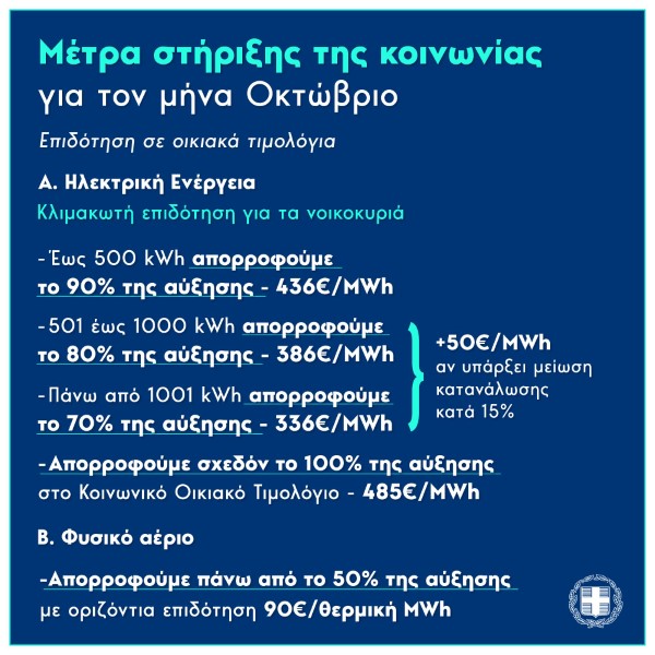 ……τον Οκτώβριο έναντι των ενεργειακών ανατιμήσεων