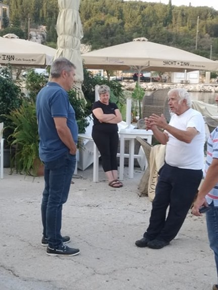 Μίλησα με κατοίκους και επαγγελματίες της περιοχής οι οποίοι μου εξέφρασαν τους προβληματισμούς τους. Επίσης έδωσα συνέντευξη στον ΣΚΑΙ και τον δημοσιογράφο κ. Χρήστο Στρατουλάκο. Αναφέρθηκα στα μεγάλα προβλήματα που δημιουργήθηκαν στα νησιά μας αλλά ταυτόχρονα η εικόνα του Φισκάρδου μου επέτρεψε να μεταφέρω και την πεποίθησή μου ότι θα τα καταφέρουμε να ξεπεράσουμε τις δυσκολίες.