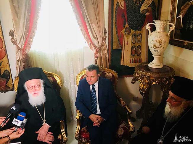 Τον Αρχιεπίσκοπο Τιράνων, Δυρραχίου και Πάσης Αλβανίας κ.κ. Αναστάσιο, υποδέχθηκαν  το πρωί, στο αεροδρόμιο Ι. Καποδίστριας, ο Περιφερειάρχης Ιονίων Νήσων Θεόδωρος Γαλιατσάτος, με τον Μητροπολίτη Κερκύρας Παξών και Διαποντίων Νήσων κ.κ. Νεκτάριος.