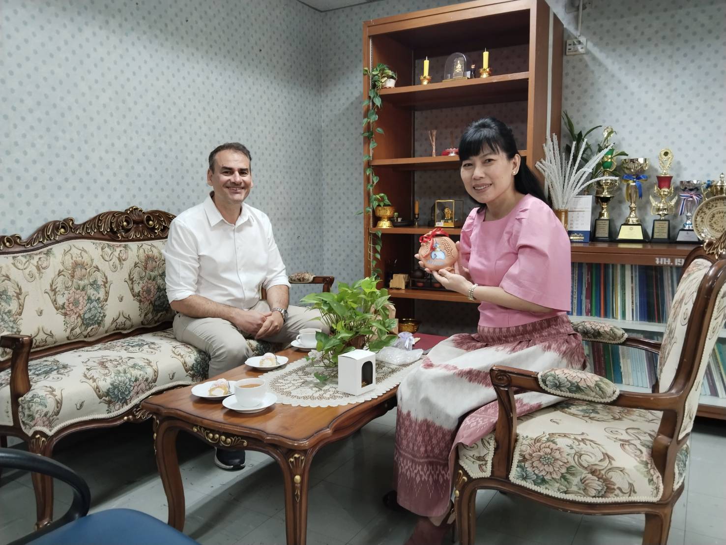 Στην Μπανγκόκ, μετά από πρόσκληση του επίκουρου καθηγητή, αντιπρύτανη της πολιτικής και του πολιτισμού της σχολής Ανθρωπιστικών επιστημών, λέκτορα του τμήματος της Νεοελληνικής γλώσσας κ. Kumpanat Buala Prayoonrattana wong, ο κ. Διονύσης Φωκάς επισκέφθηκε το τμήμα εκμάθησης Ελληνικής γλώσσας στο πανεπιστήμιο Ramkhamhaeng, το οποίο είναι το μεγαλύτερο της πρωτεύουσας της Ταϊλάνδης. Εκεί συναντήθηκε με την κοσμήτορα της σχολής Ανθρωπιστικών επιστημών επίκουρη καθηγήτρια κα. Tippa u-saSriprert και την καθηγήτρια του τμήματος Ιστορίας Δρ. Thissana Weerakietsoontorn η οποία μελετάει την ζωή του Κωνσταντίνου Γεράκη.