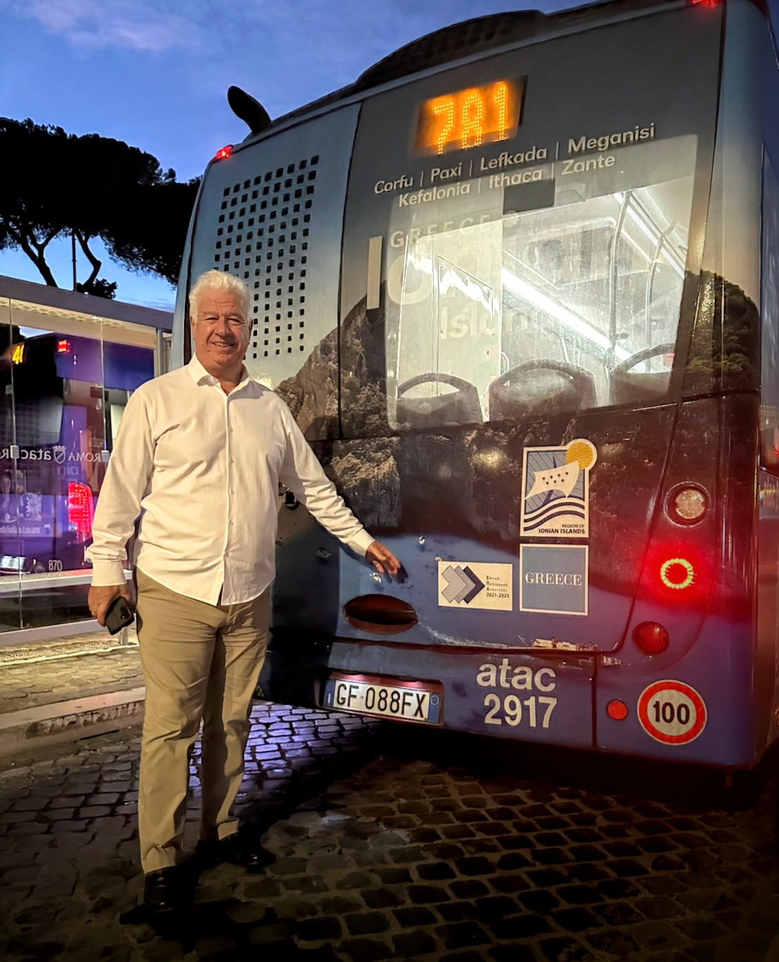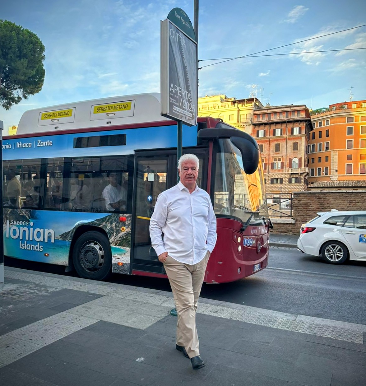 Στη Ρώμη βρέθηκε ο Περιφερειάρχης Ιονίων Νήσων, Γιάννης Τρεπεκλής, στο πλαίσιο της υλοποίησης δράσης τουριστικής προβολής μεγάλης εμβέλειας, που αφορά στην πλήρη διαφημιστική επένδυση (full wrap) πέντε αστικών λεωφορείων της ιταλικής πρωτεύουσας.