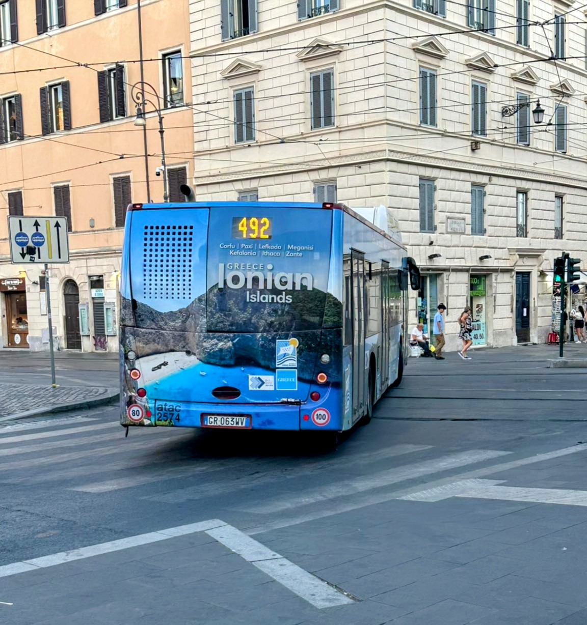 Τα λεωφορεία αυτά, κυκλοφορώντας για 28 ημέρες στο ιστορικό και τουριστικό κέντρο της Ρώμης, προβάλλουν με έντονη οπτική ταυτότητα τα Ιόνια Νησιά ως ποιοτικό και αυθεντικό προορισμό.