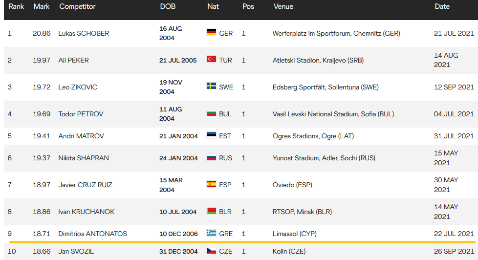 Κριτήριο για την ένταξη στον σχεδιασμό του ΣΕΓΑΣ ήταν η επίτευξη του ορίου για το Πανευρωπαϊκό Πρωτάθλημα. Ο Δημήτρης είχε πιάσει το όριο τόσο στο Πανελλήνιο πρωτάθλημα όσο και σε διεθνή συνάντηση που έγινε στην Κύπρο, όταν κέρδισε την πρώτη θέση με 18,71μ, μια επίδοση που τον κατατάσσει στην 9η θέση στην Ευρώπη για το 2021.