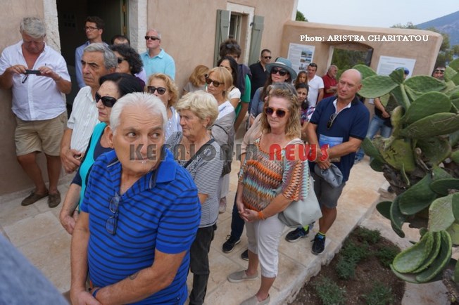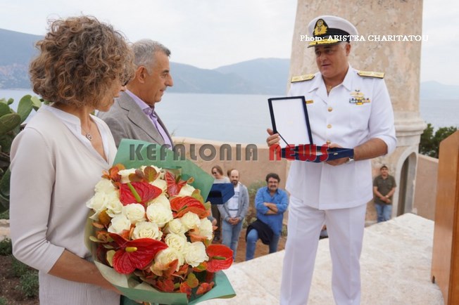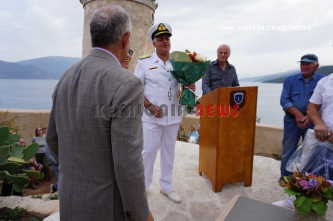 Τον λόγο πήρε η κα Πέννυ Αποστολίδη “Σεβασμιότατε ευχαριστούμε που ήρθατε σήμερα Παραμονή του Αγίου Γερασίμου. Κάναμε πριν 5 χρόνια με τον Σύλλογο της Ερίσου “Αστερίδα” ένα δίκτυο μονοπατιών. Χρηματοδοτήσαμε και ανοίξαμε τρία μονοπάτια. Το πιο μικρό και το πρώτο που ανοίξαμε ήταν αυτό που ονομάσαμε το μονοπάτι των Φάρων και όταν βάζαμε τις πινακίδες διαπιστώσαμε την πολύ κακή κατάσταση στον Φάρο, στο σπίτι, στον περίβολο. Έχουμε από την μιά μεριά υπερπολυτελή σκάφη και από την άλλη πλευρά εικόνες εγκατάλειψης και αυτό μας αναστάτωσε και έτσι ξεκινήσαμε Και στην πορεία του έργου καταφέραμε και σπάσαμε μερικά στερεότυπα που υπάρχουν. Το ένα είναι ότι δεν υπάρχει εμπιστοσύνη και συνεργασία ανάμεσα στους φορείς, ή ότι δεν υπάρχει συνεργασία με το δημόσιο και τον πολίτη. Είχαμε μιά άψογη συνεργασία. Ήμασταν εστιασμένοι όλοι στο έργο του Φάρου. Ένα δεύτερο στερεότυπο ήταν ότι δεν κάνουν καλή δουλειά οι εργολάβοι. Έβγαλαν ένα αποτέλεσμα το οποίο ήταν πέρα των προσδοκιών μας. Και ένα τρίτο στερεότυπο ότι ο κόσμος δεν ενδιαφέρεται, εμείς όταν δουλέψαμε στα μονοπάτια και εδώ η τοπική κοινωνία ανταποκρίθηκε θετικά και ο καθένας βοήθησε εκεί όπου μπορούσε. Εύχομαι να το χαρούν οι κάτοικοι του Φισκάρδου και της Κεφαλονιάς και εύχομαι η υπηρεσία Φάρων να το αξιοποιήσει, να το φροντίσει για την ιστορία τους και για την ευρύτερη πολιτιστική του αξία”.