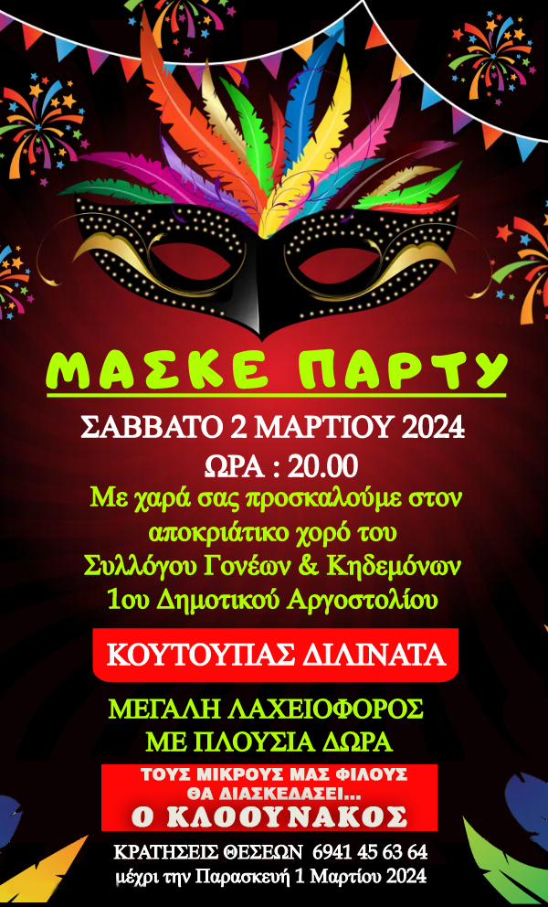 ΣΥΛΛΟΓΟΣ ΓΟΝΕΩΝ ΚΑΙ ΚΗΔΕΜΟΝΩΝ 1ΟΥ ΔΗΜΟΤΙΚΟΥ ΣΧΟΛΕΙΟΥ ΑΡΓΟΣΤΟΛΙΟΥ
