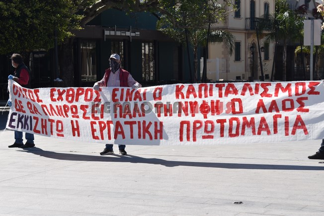 Την ομιλία έκανε ο Πρόεδρος του Εργατικού Κέντρου, Γιώργος Γαβρίλης.