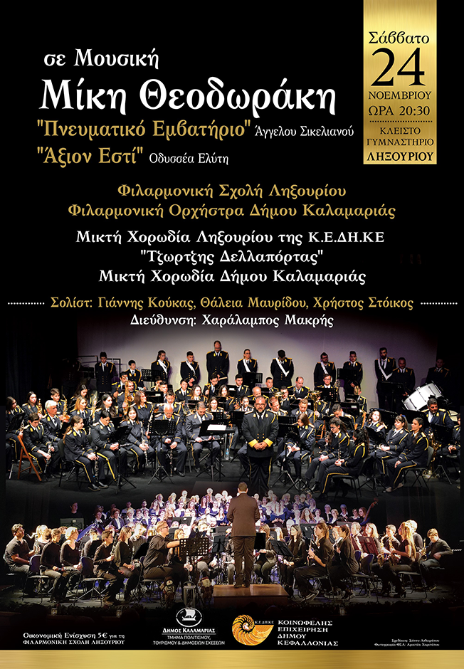 Μίκη Θεοδωράκη Άξιον Εστί – Πνευματικό Εμβατήριο Φ.Ο. Δήμου Καλαμαριάς- Φιλαρμονική Σχολή Ληξουρίου
