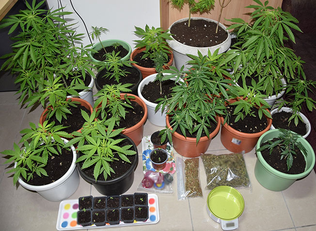 Επιπλέον, στο μπαλκόνι της οικίας βρέθηκαν σε γλάστρες, 24 δενδρύλλια κάνναβης, μήκους έως 55 εκατοστών και 12 δενδρύλλια σε πρώιμη ανάπτυξη, τα οποία κατασχέθηκαν.