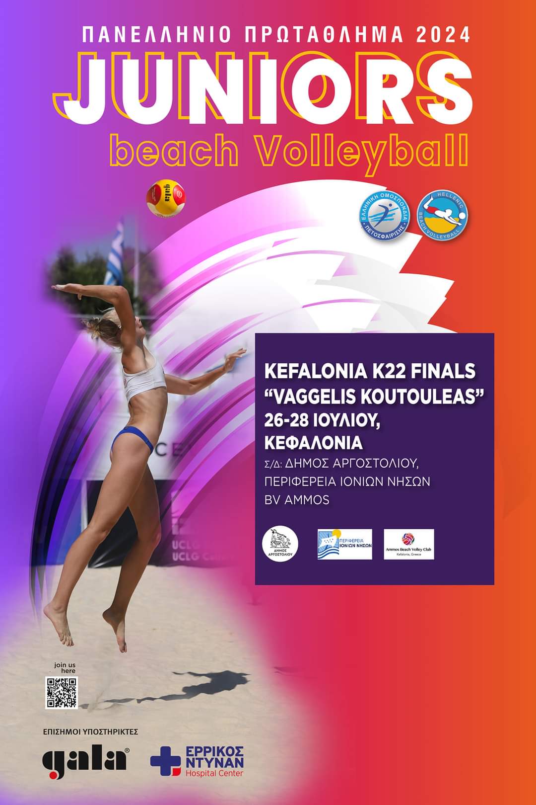 Σας προσκαλούμε στη συνέντευξη Τύπου, που θα πραγματοποιηθεί στο Δημοτικό Θέατρο Αργοστολίου “Ο ΚΕΦΑΛΟΣ”, την Παρασκευή 26 Ιουλίου 2024 και ώρα 12:30, στα πλαίσια της διεξαγωγής του Πανελλήνιου Πρωταθλήματος Beach Volleyball Juniors U-22 Finals 2024, στην παραλια του Άη Χέλη 26-28 Ιουλίου 2024.