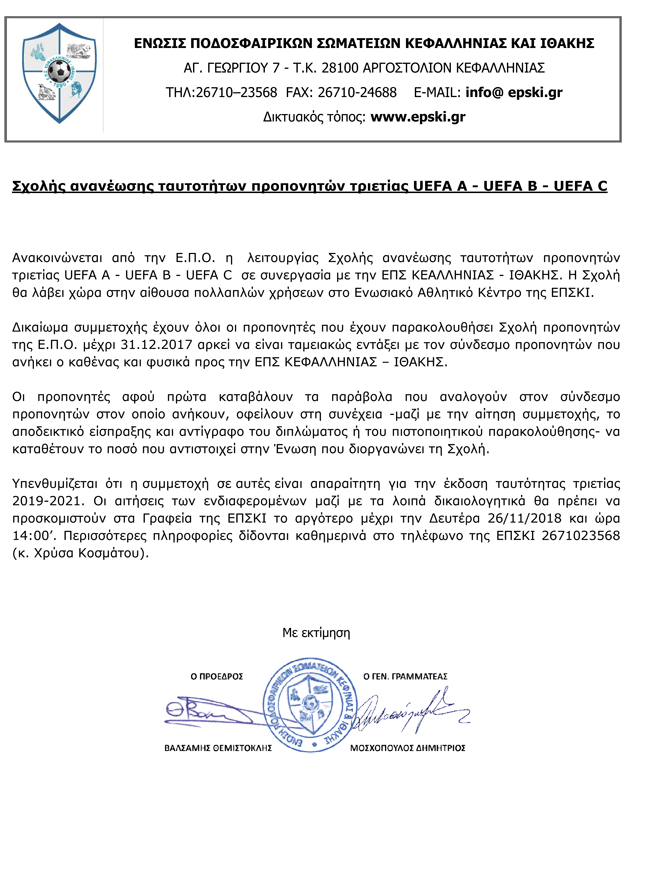 Σχολής ανανέωσης ταυτοτήτων προπονητών τριετίας UEFA A – UEFA C
