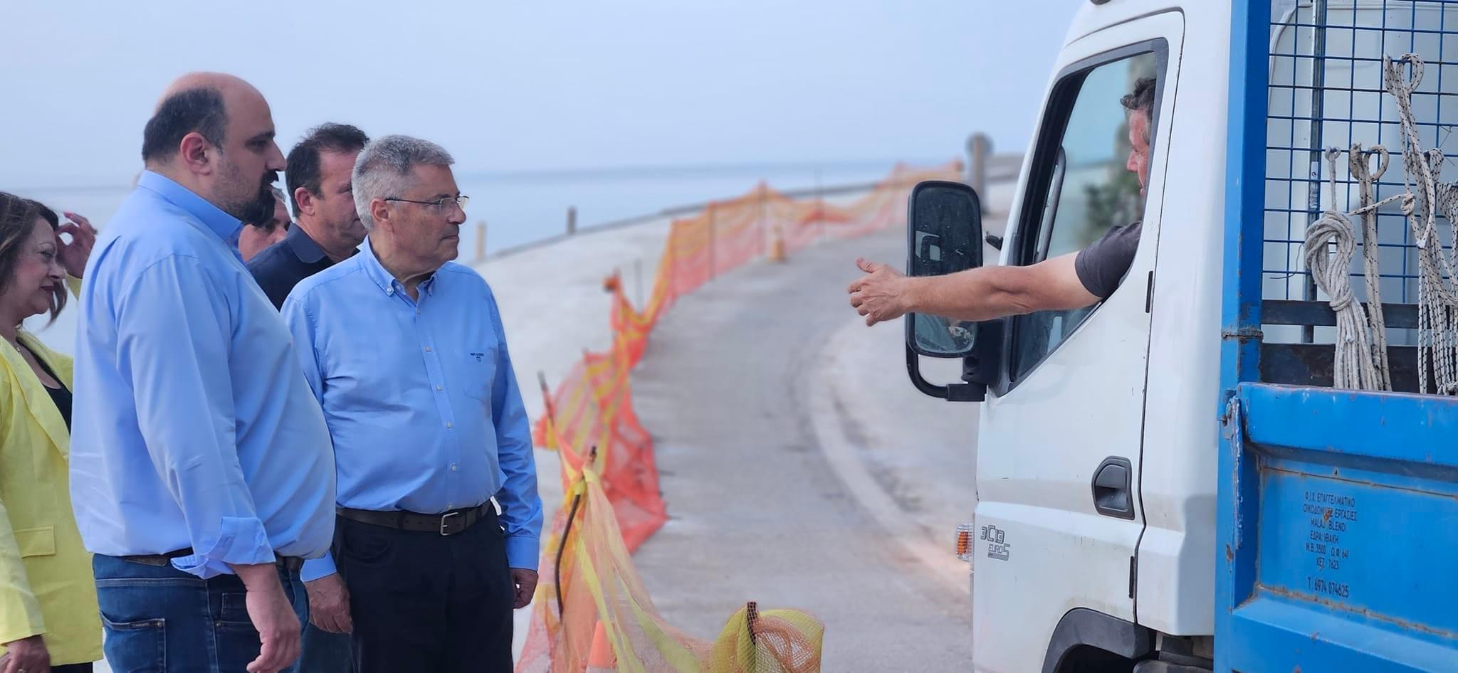 Ακολούθως, επισκεφθήκαμε από κοντά τα έργα που υλοποιούνται -έπειτα από τον μεσογειακό κυκλώνα του Ιανού- στον επαρχιακό δρόμο Φρίκες – Κιόνι και συνεχίζονται από την ΠΙΝ.
