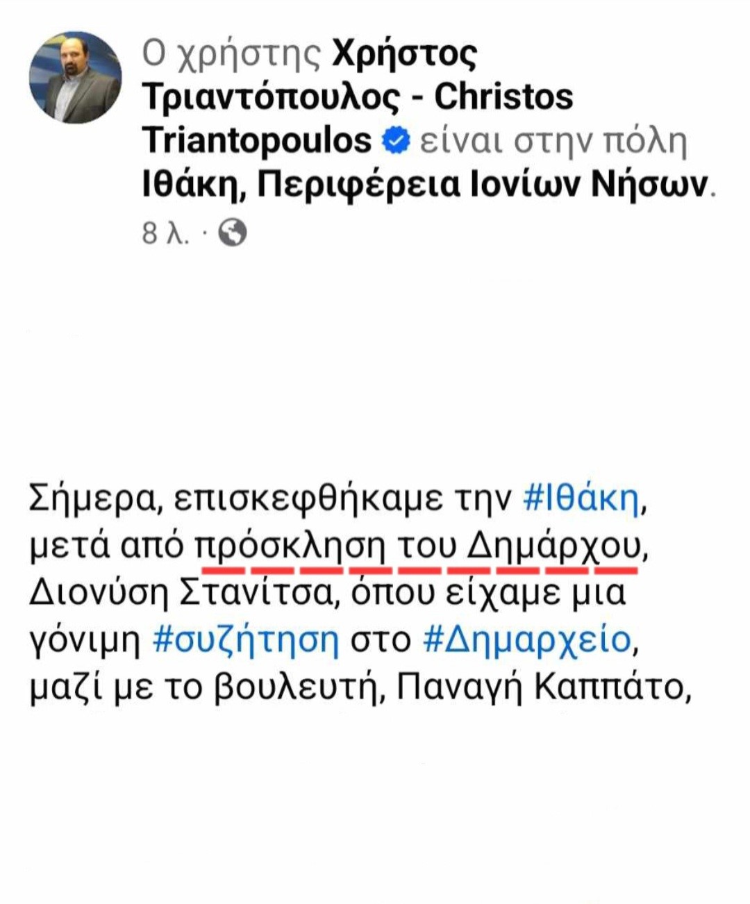 Αλήθεια  ;;; Πόσες φορές τον καλέσατε και εσείς κ. Καππάτε τον Τριαντόπουλο《 αυτόν του μπαζώματος και του ξεμπαζώματος 》στη Κεφαλονιά  ;;;