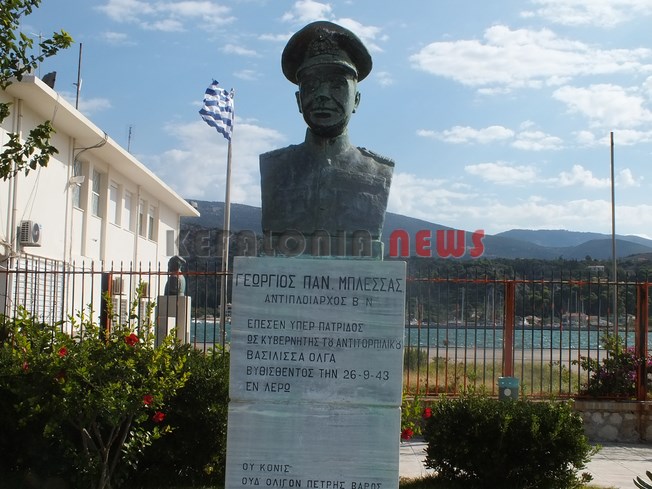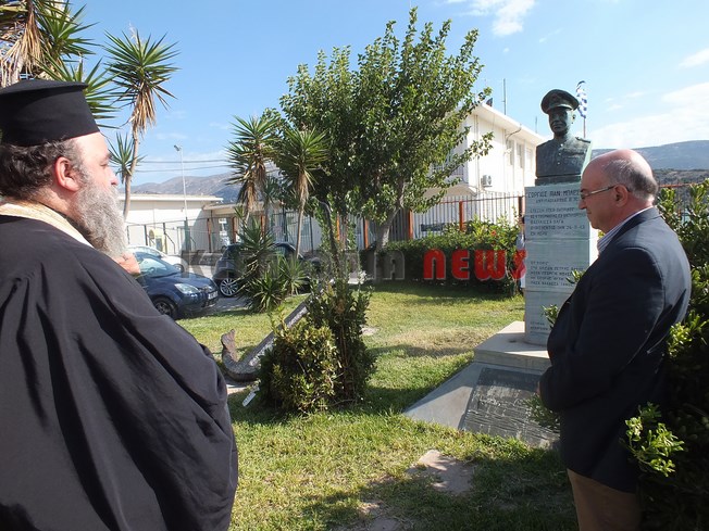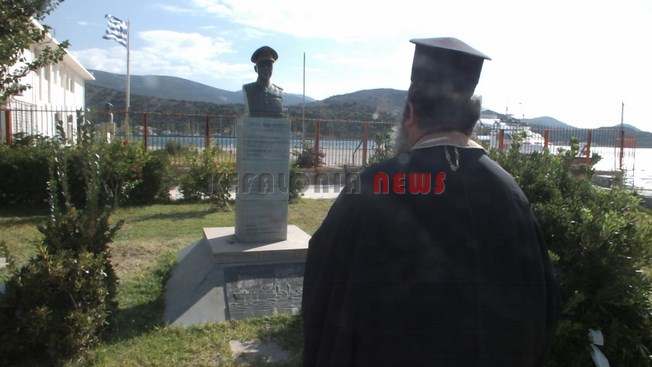 Τίμησαν τον ήρωα κυβερνήτη του Αντιτορπιλικού “Βασίλισσα Όλγα” Γεώργιο Μπλέσσα, μπροστά στην προτομή που βρίσκεται έξω από το Λιμεναρχείο.