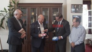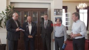 Τιμήθηκε από τον Δήμαρχος Αλ. Παρίση ο Πρέσβης του Καναδά κ.  Keith Morrrill. Στην  μικρή αυτή τελετή παραβρέθηκε και ο υφυπ. κ. Τέρενς Κουίκ. Μαζί τους ήταν ο αντιδήμαρχος κ. Βαγ. Κεκάτος, ο κ. Μαρίνος Χιόνης Επίτιμος Πρόεδρος της Ομοσπονδίας και η κ. Αγγελική Χιόνη Αντιπρόεδρος της Ομοσπονδίας.