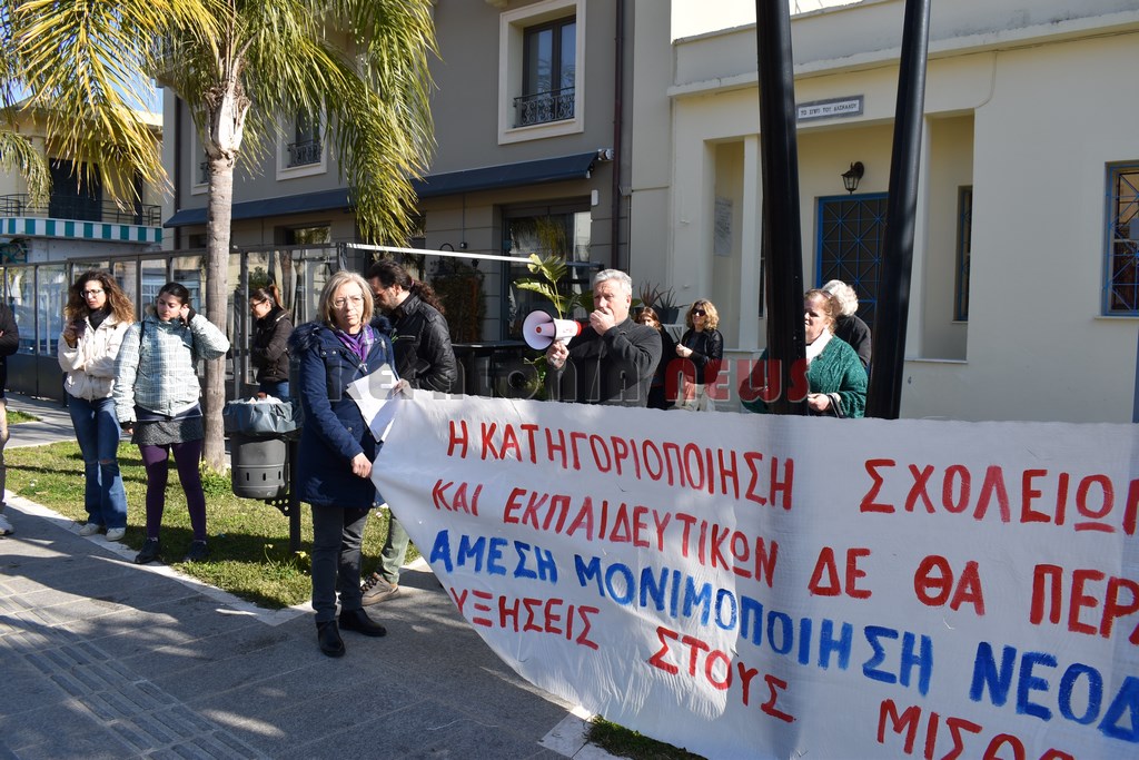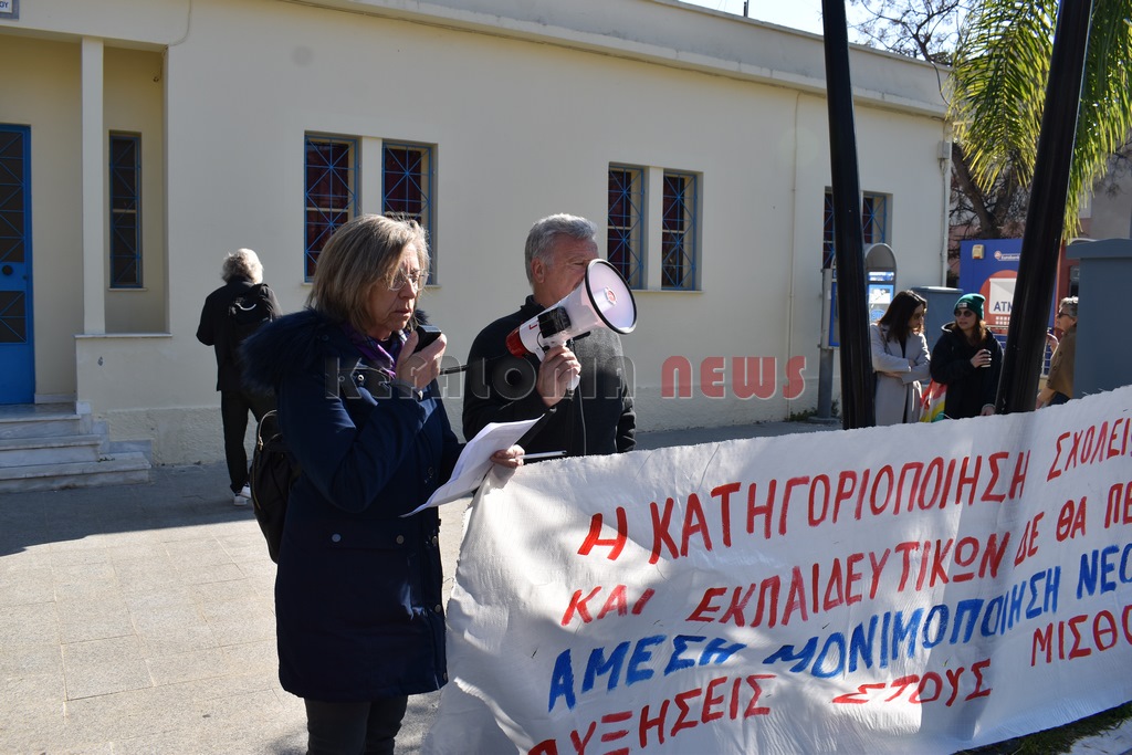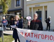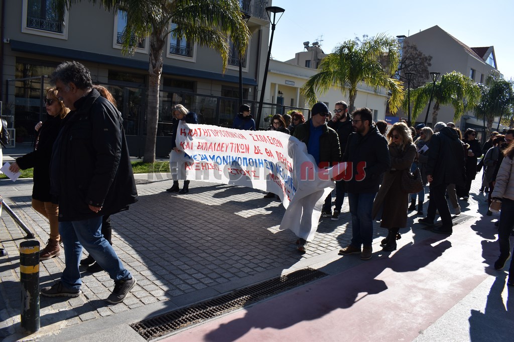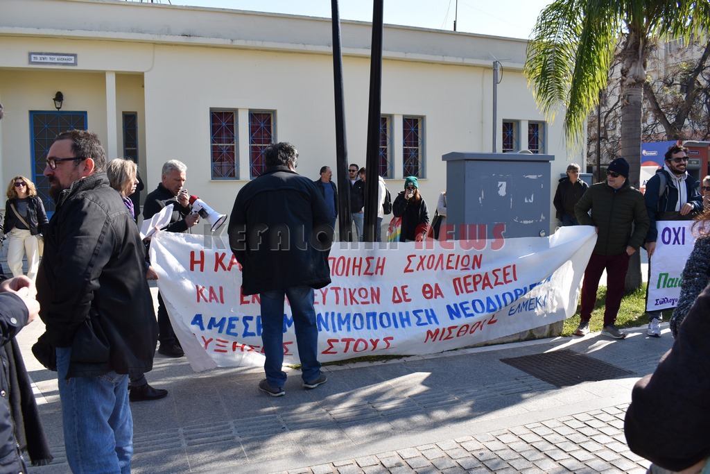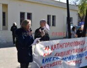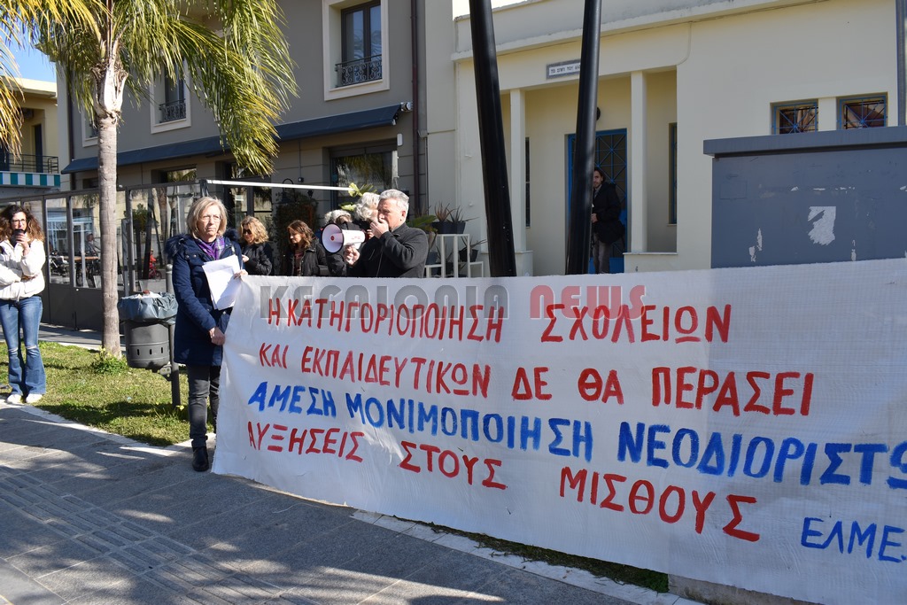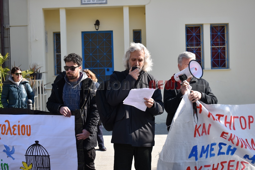Έξω από το “Σπίτι του Δασκάλου” μαζεύτηκαν οι Δάσκαλοι και οι καθηγητές με ομιλία της προέδρου της ΕΛΜΕ-ΚΙ Σοφία Ποταμιάνου και του Προέδρου των Δασκάλων Βαγ. Βαρδαραμάτου.