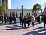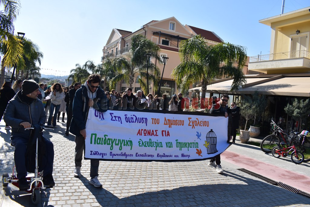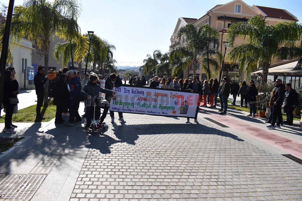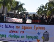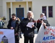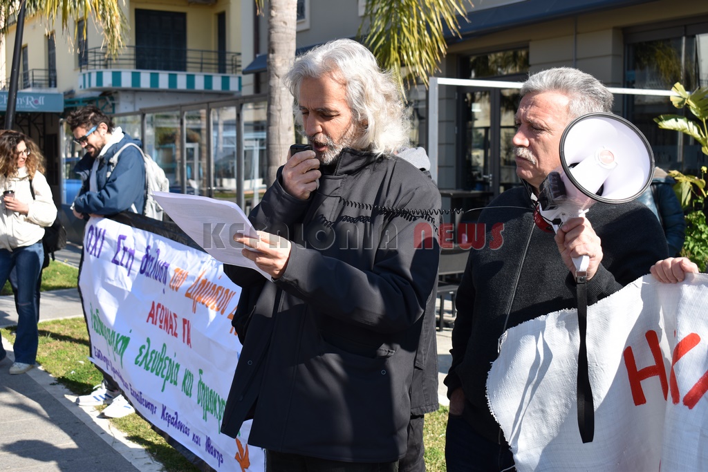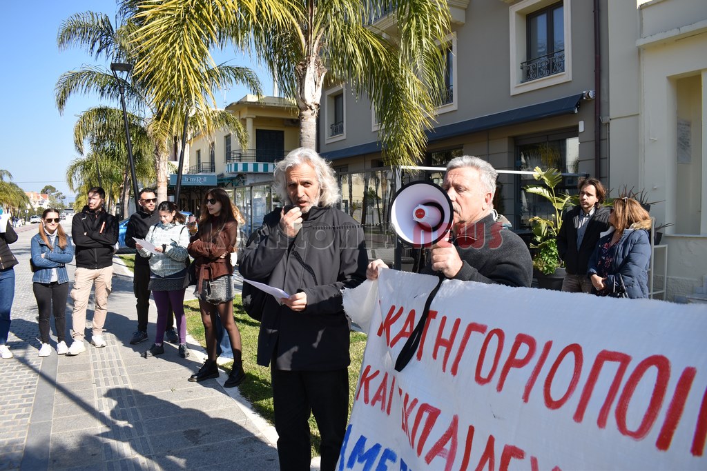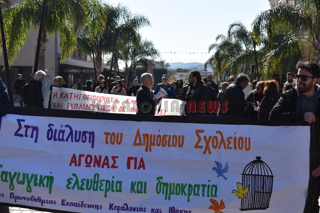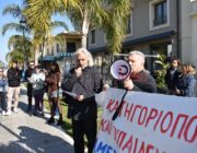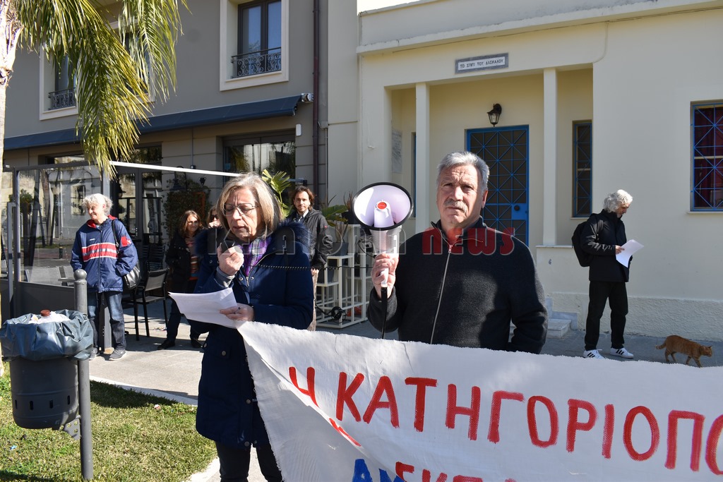 Έξω από το “Σπίτι του Δασκάλου” μαζεύτηκαν οι Δάσκαλοι και οι καθηγητές με ομιλία της προέδρου της ΕΛΜΕ-ΚΙ Σοφία Ποταμιάνου και του Προέδρου των Δασκάλων Βαγ. Βαρδαραμάτου.
