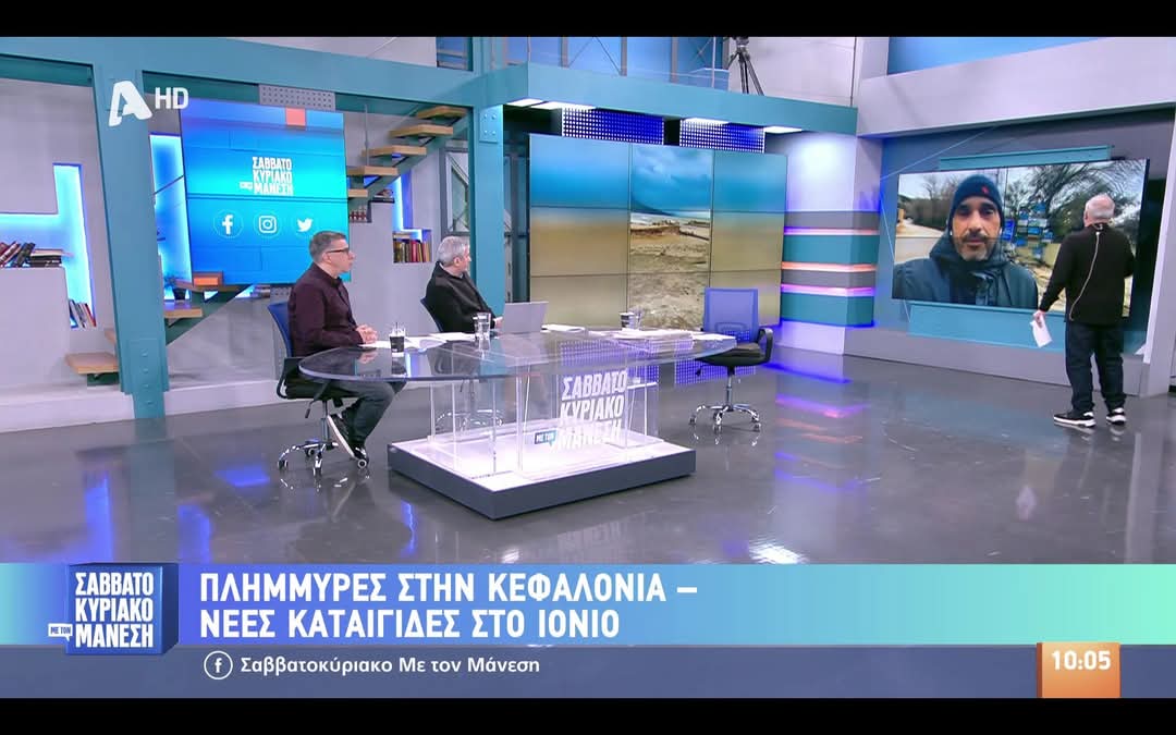 Στη συνέχεια κάναμε ζωντανή μετάδοση από τα Λιμένια του Πόρου Κεφαλονιάς για τη δημοφιλή εκπομπή του συμπατριώτη μας Νίκου Μάνεση στον Alpha “Σαββατοκύριακο με τον Μάνεση” όπου μίλησε ξανά μέσα σε μια ώρα στην τηλεόραση ο Πρόεδρος του Πόρου Οδυσσέας Γαλιατσάτος μαζί τηλεοπτικά με τον έγκριτο Κεφαλονίτη δημοσιογράφο Μάκη Λεκατσά από το χωριό Καρούζα. Ακόμα, ενημέρωσαν τον κόσμο ο έγκυρος Κεφαλονίτης μετεωρολόγος Γιώργος Τσατραφύλλιας και ο γνωστός σ’ όλους μας Τζέρυ Γασπαρινάτος ζωντανά από την Λειβαθώ!