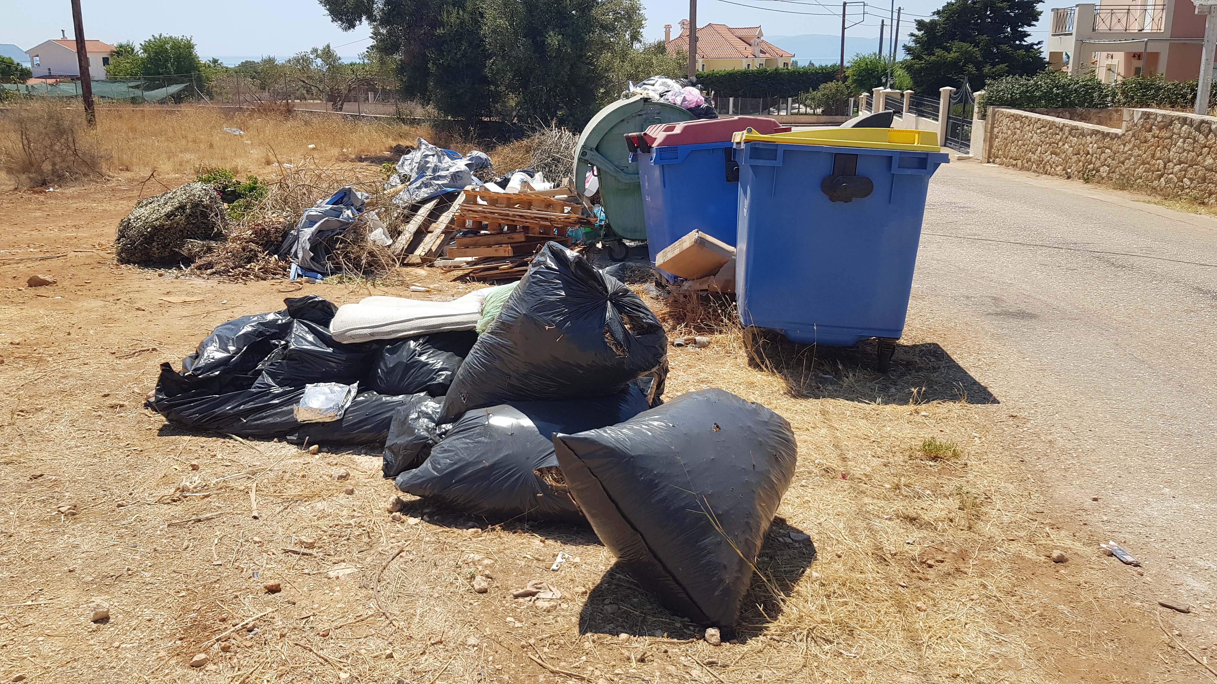 Πετούν ογκώδη αντικείμενα μέσα στους κάδους σκουπιδιών και ανακύκλωσης με αποτέλεσμα να ξεχειλίζουν και να δημιουργείται μια απαράδεκτη εικόνα.