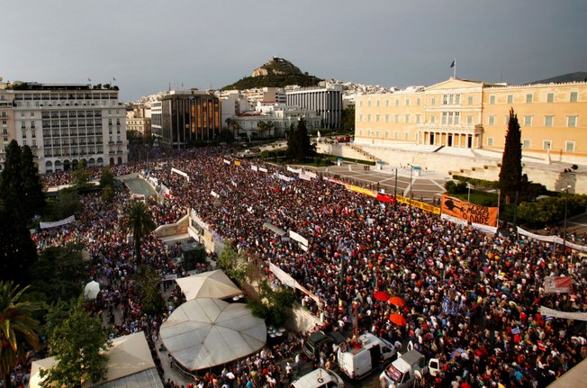 Μεγάλος αριθμός διαδηλωτών έχει περικυκλώσει το ελληνικό κοινοβούλιο στις 5 Ιουνίου 2011, σε διαμαρτυρία που κάλεσε το κίνημα των «Αγανακτισμένων»
