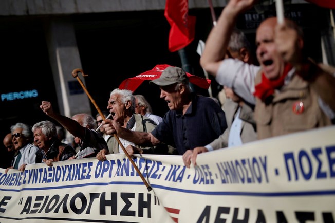 Συνταξιούχοι διαδηλώνουν ενάντια στις σχεδιαζόμενες περικοπές των συντάξεων, στις 3 Οκτωβρίου 2017